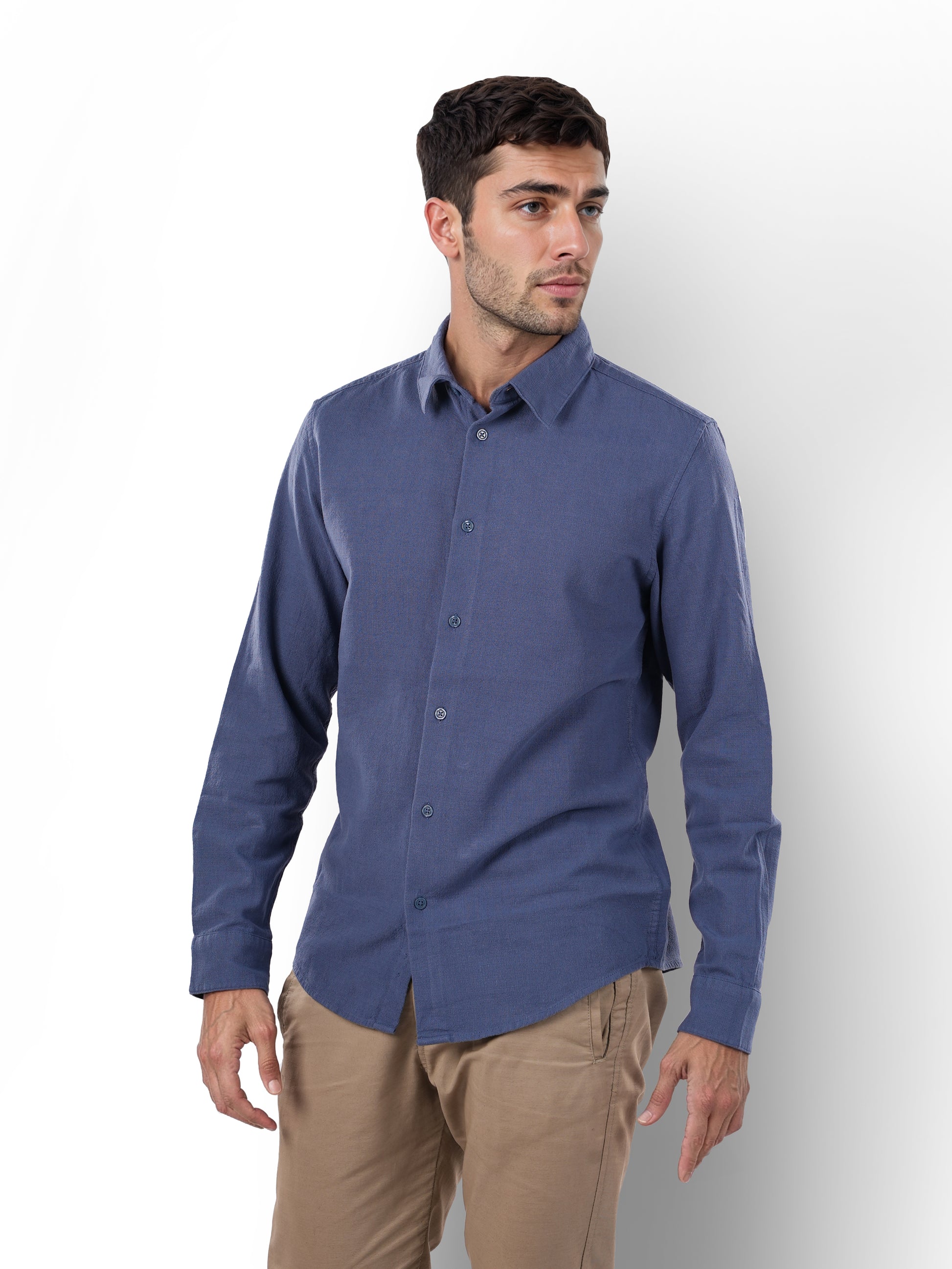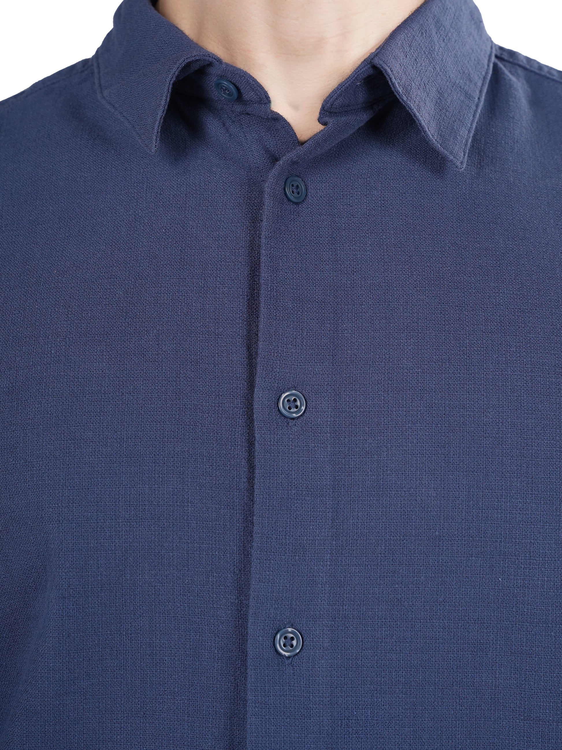 Celio* Solid Regular Fit Cotton Blue Shirt