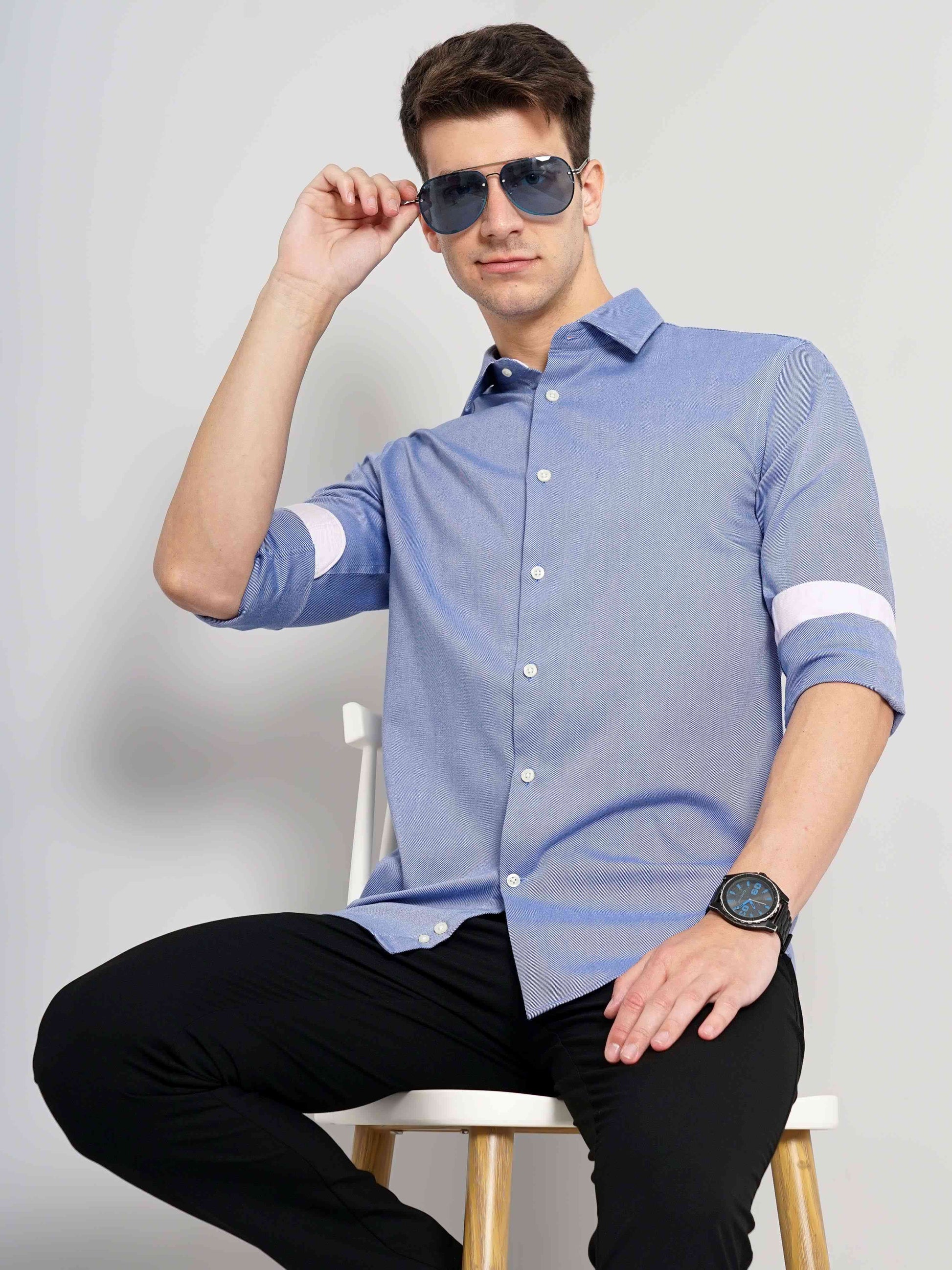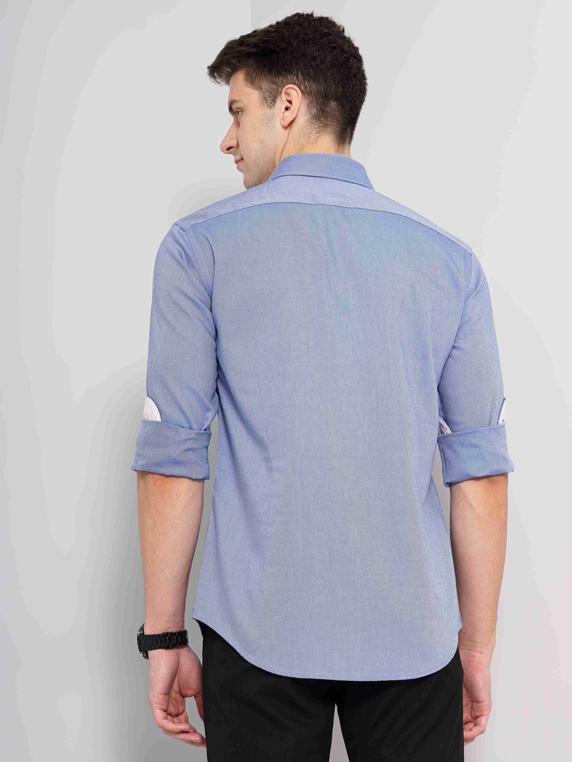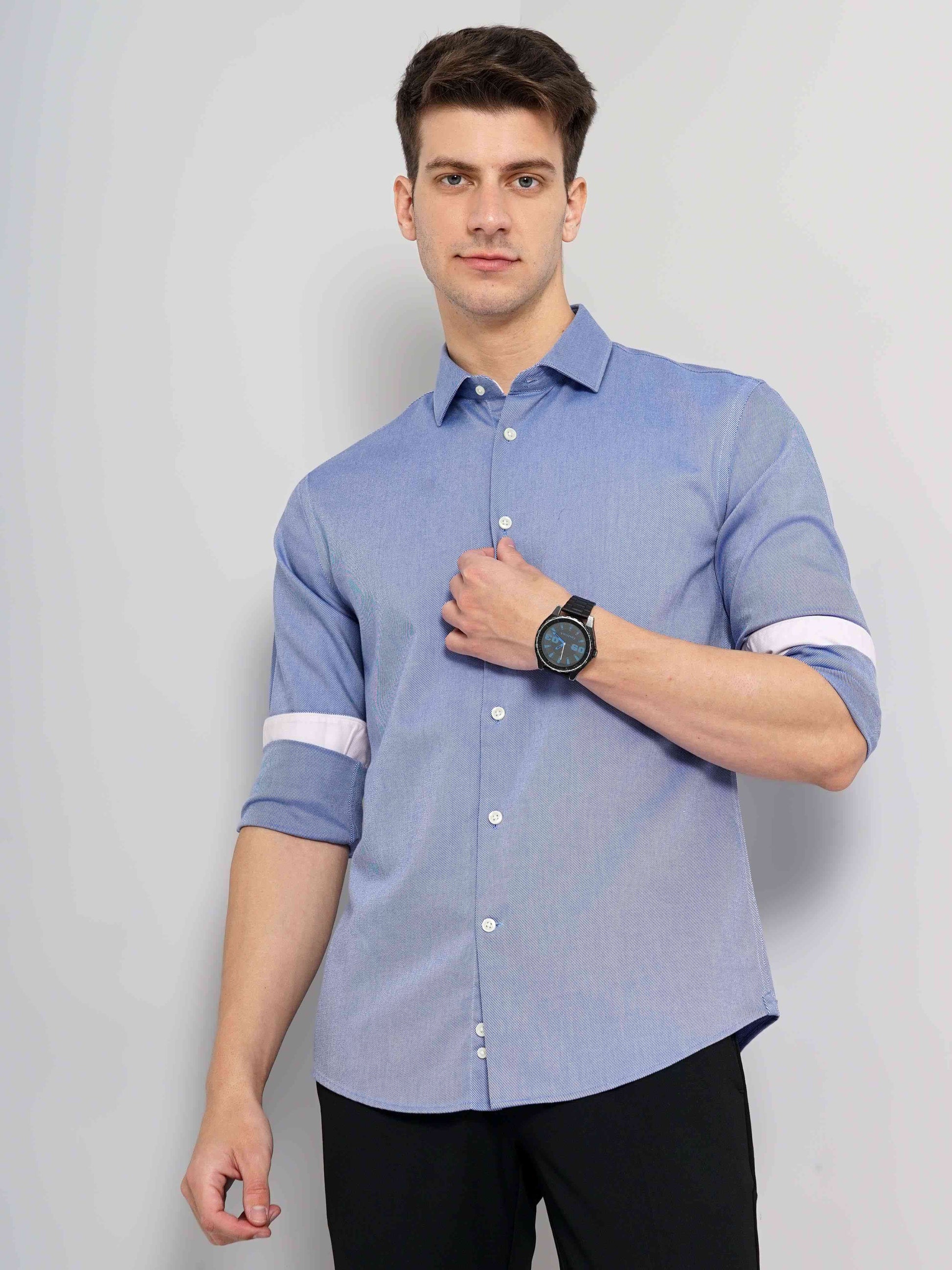 Celio Men Blue Solid Regular Fit Cotton Shirts