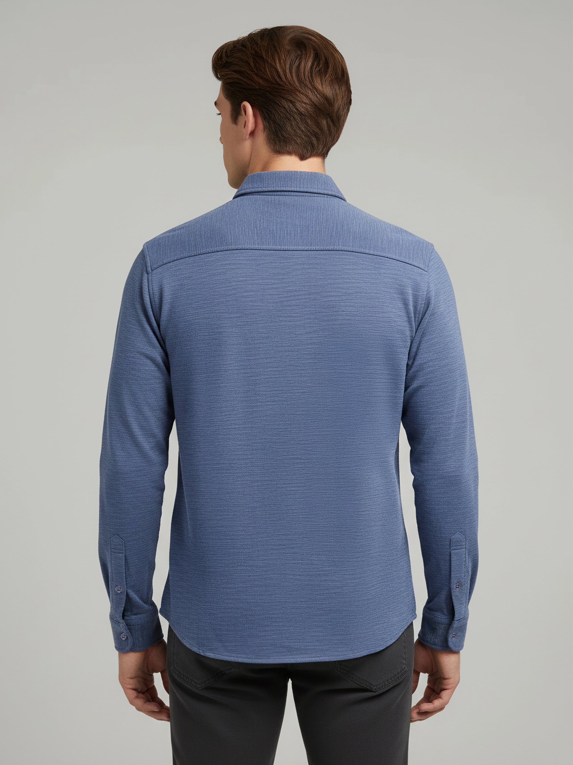 This blue solid cotton knit shirt from Celio is designed for men. With long sleeves, it's perfect for casual occasions, offering both comfort and style. Disclaimer: All other items in the image are only for display purposes and will not be a part of the delivery content. Product colour may slightly vary due to photographic lighting sources. Country of Origin - India.