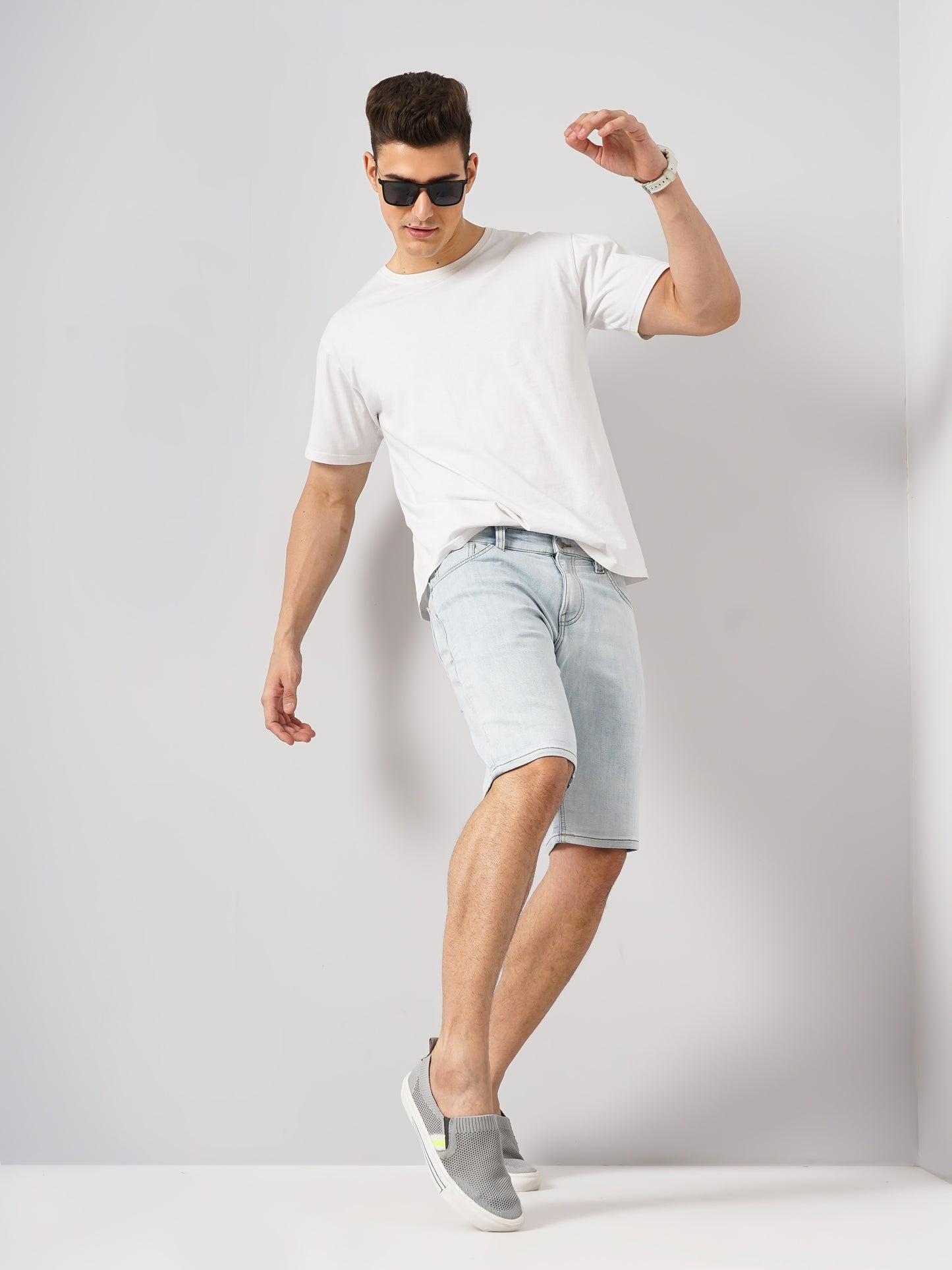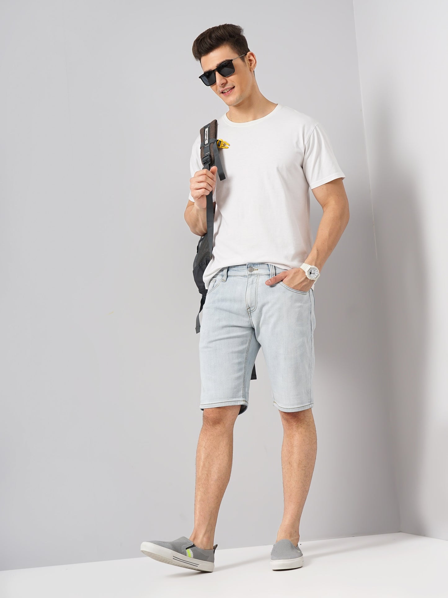 Shop Celio Men Blue Solid Casual Shorts made from comfortable cotton. Perfect for casual outings, these regular fit shorts combine style and comfort for everyday wear. Disclaimer: All other items in the image are only for display purposes and will not be a part of the delivery content. Product colour may slightly vary due to photographic lighting sources. Country of Origin - India.