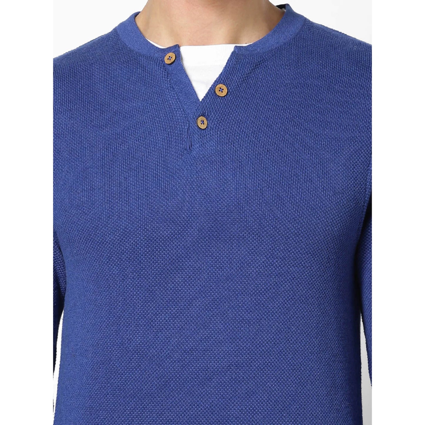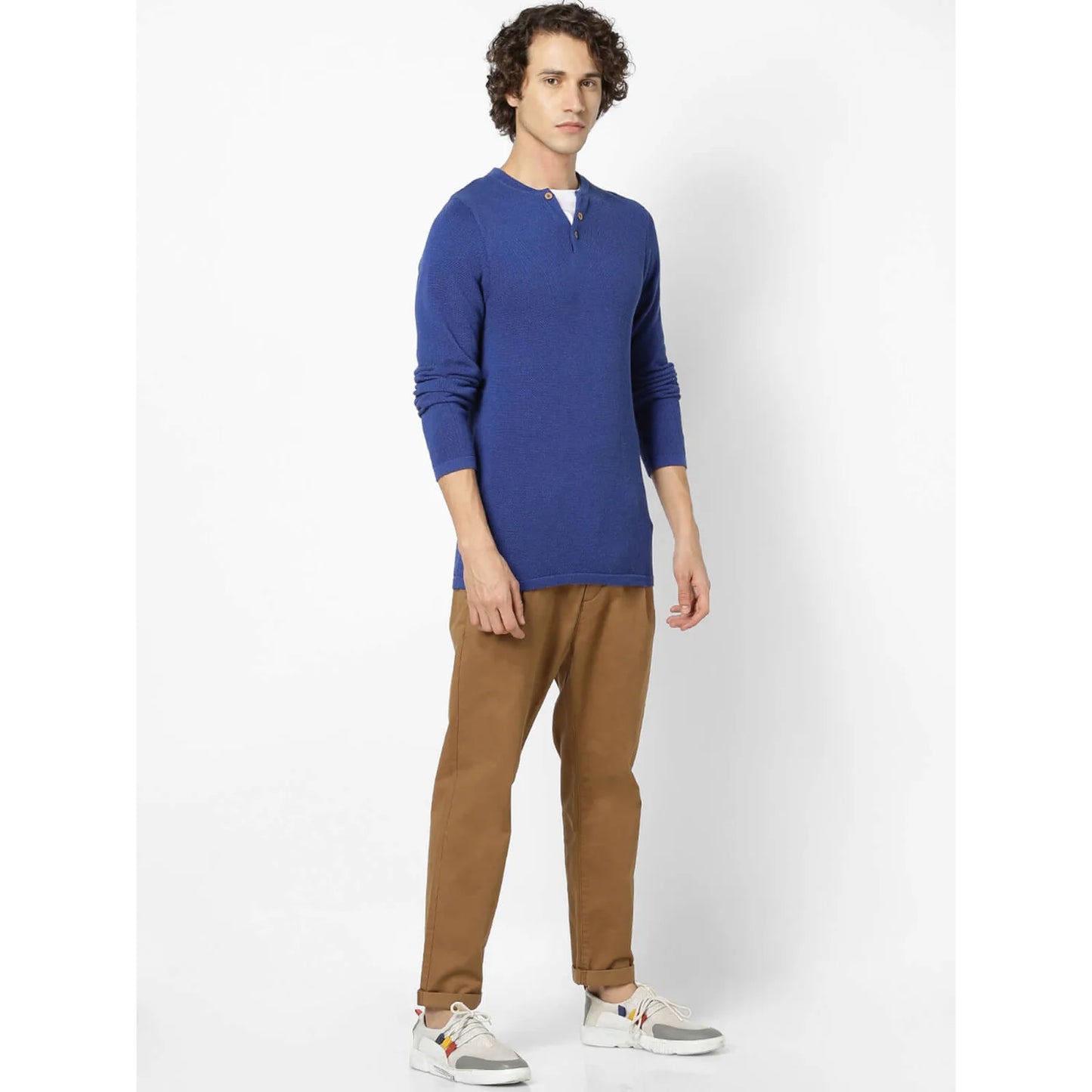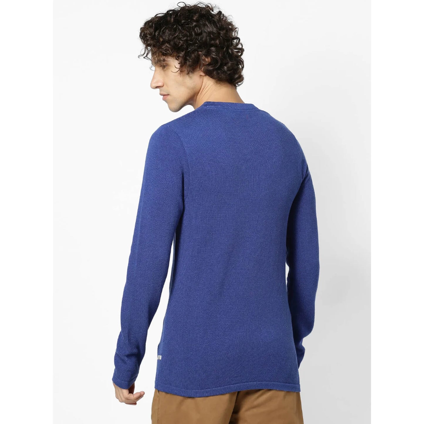 Celio* Solid Regular Fit Cotton Blue Sweater