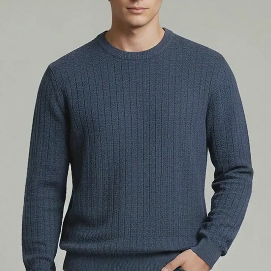 Celio* Men Blue Solid Regular Fit Cotton Sweaters