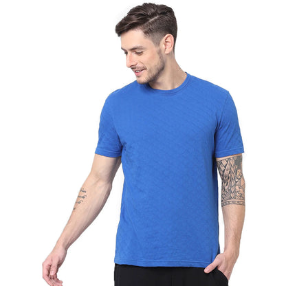 Celio* Solid Regular Fit Cotton Blue T-Shirt