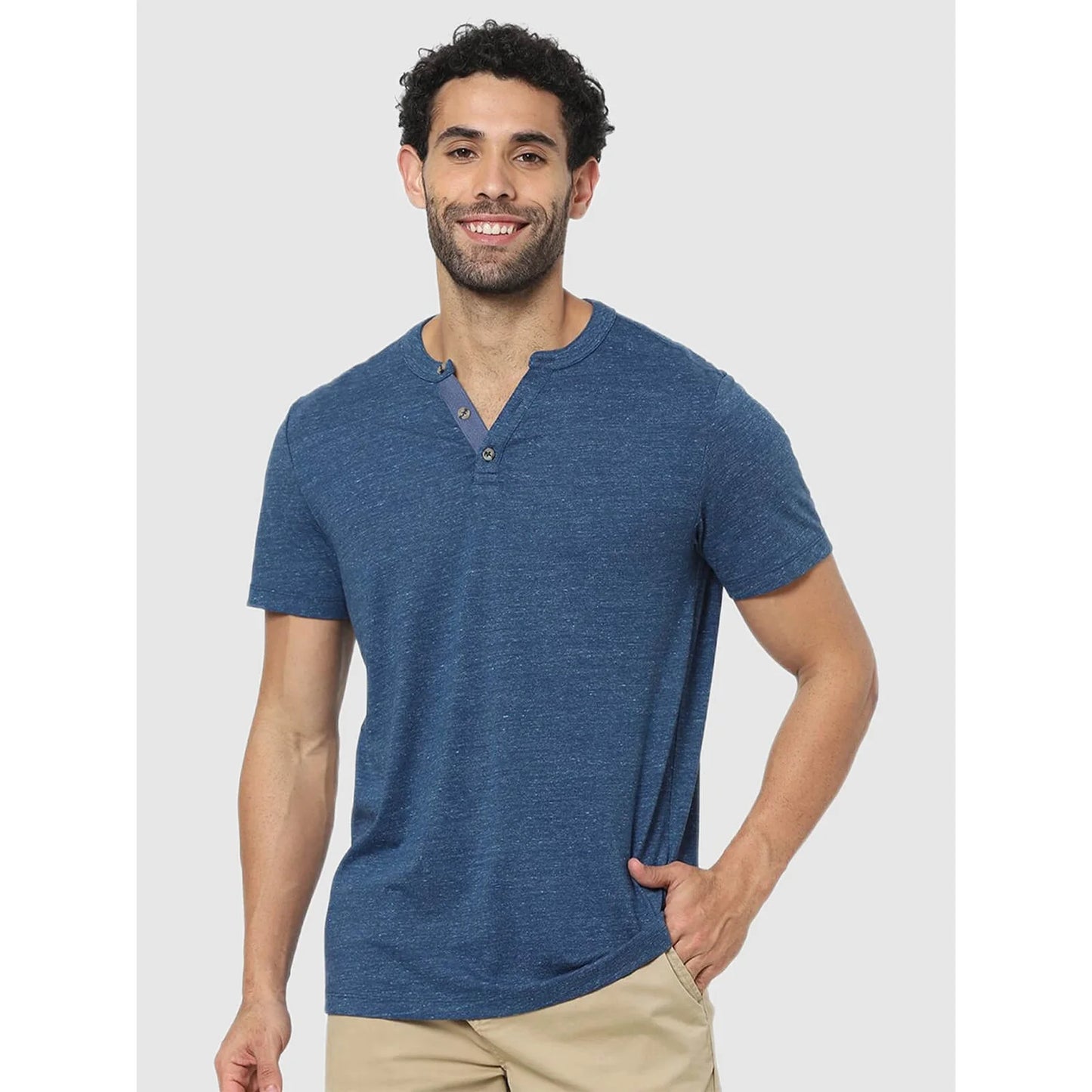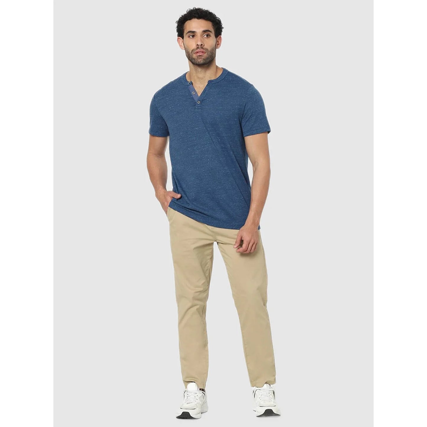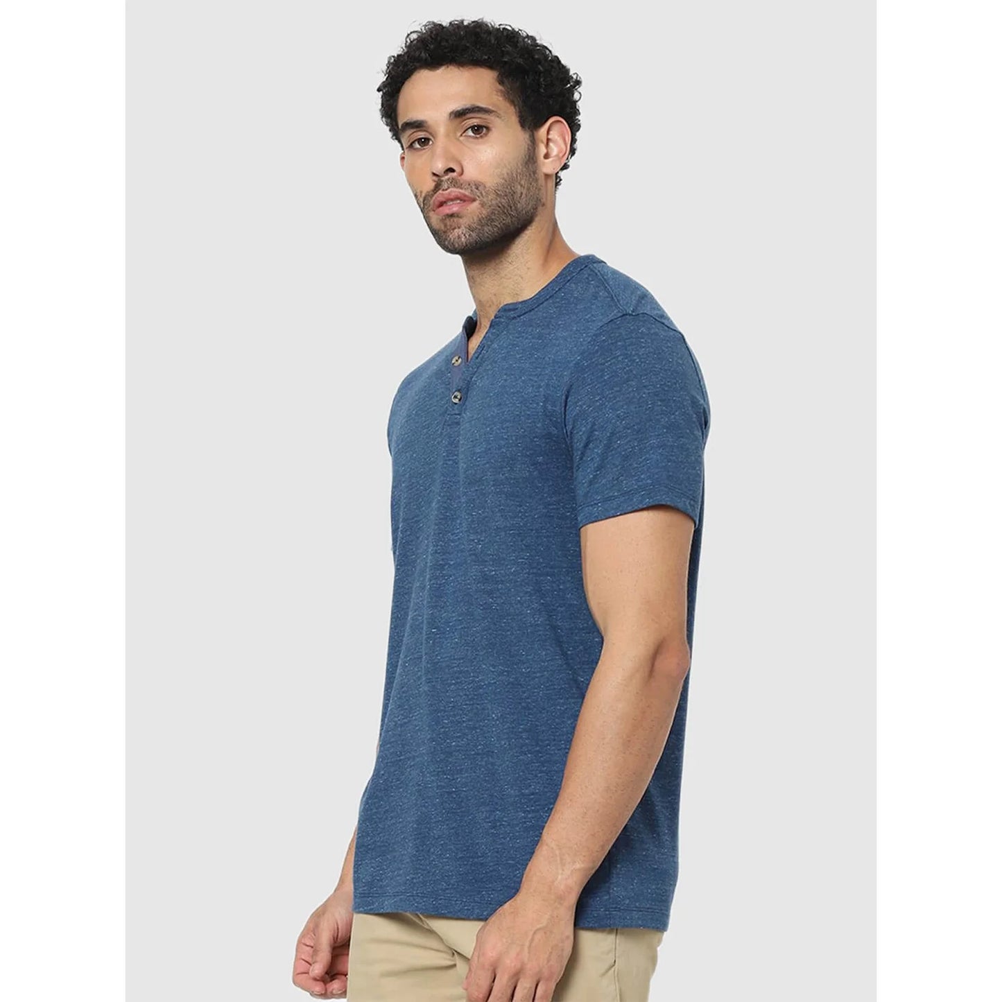 Celio* Solid Regular Fit Cotton Blue T-Shirt