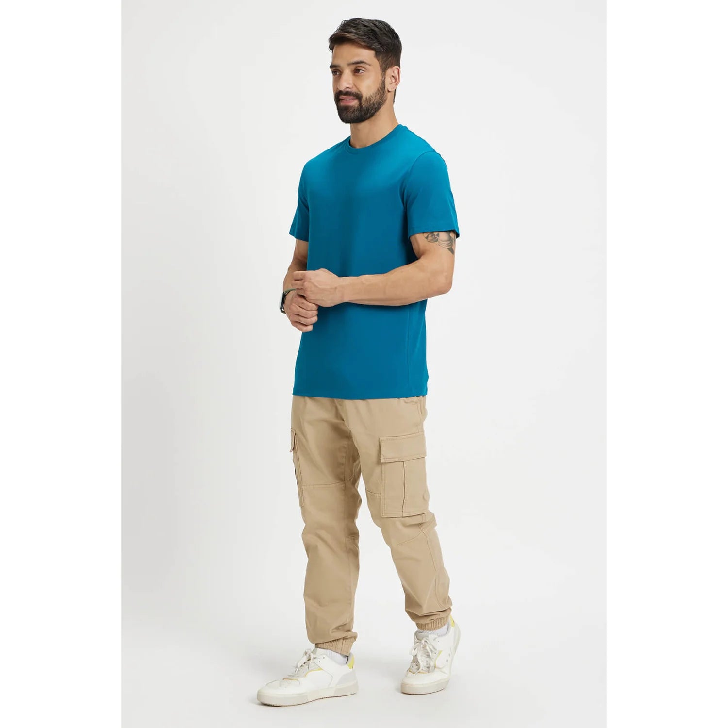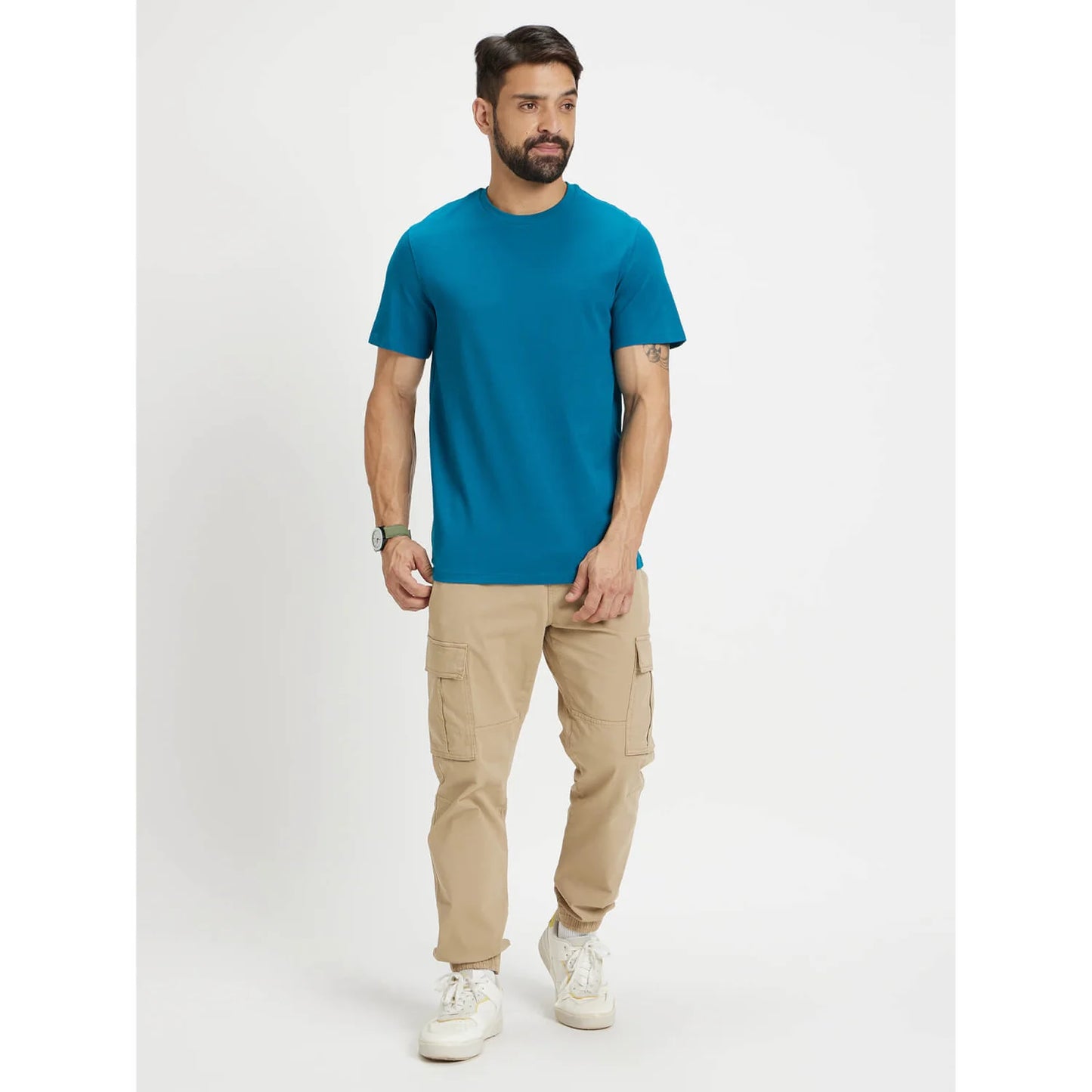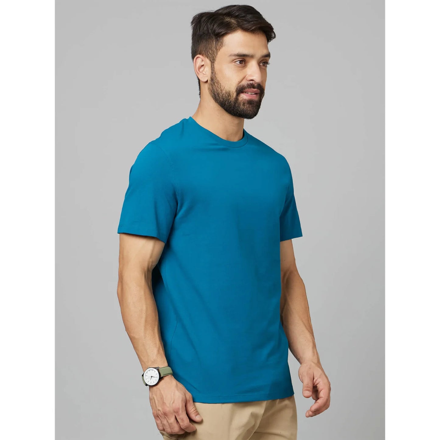 Celio* Solid Regular Fit Cotton Blue T-Shirt