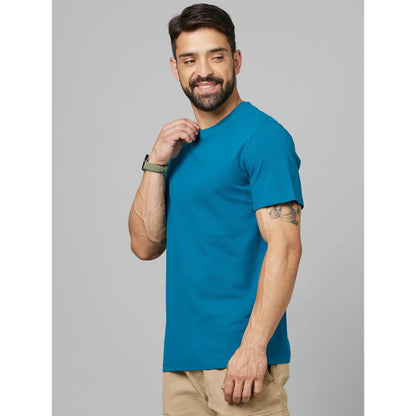 Elevate your casual wardrobe with the Celio Men's Blue Solid T-Shirt. Crafted from comfortable cotton, it features half sleeves and a stylish petrol hue, perfect for any casual occasion. Disclaimer: All other items in the image are only for display purposes and will not be a part of the delivery content. Product colour may slightly vary due to photographic lighting sources. Country of Origin - India.