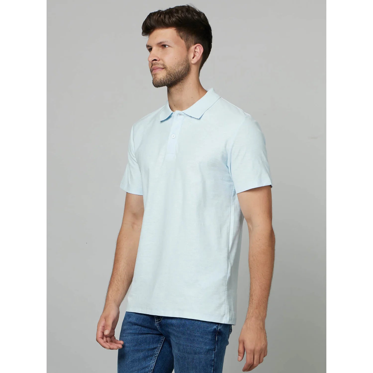 Stylish Celio Solid Blue Polo in Feflame Blue. Made from comfortable cotton, it's perfect for casual occasions. This men's half-sleeve polo combines fashion and comfort effortlessly. Disclaimer: All other items in the image are only for display purposes and will not be a part of the delivery content. Product colour may slightly vary due to photographic lighting sources. Country of Origin - India.