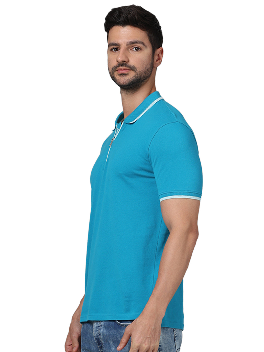 Experience style and comfort with the Celio Men Blue Polo. Made from cotton, this regular fit t-shirt features a polo collar and short sleeves, perfect for casual occasions. Disclaimer: All other items in the image are only for display purposes and will not be a part of the delivery content. Product colour may slightly vary due to photographic lighting sources. Country of Origin - India.