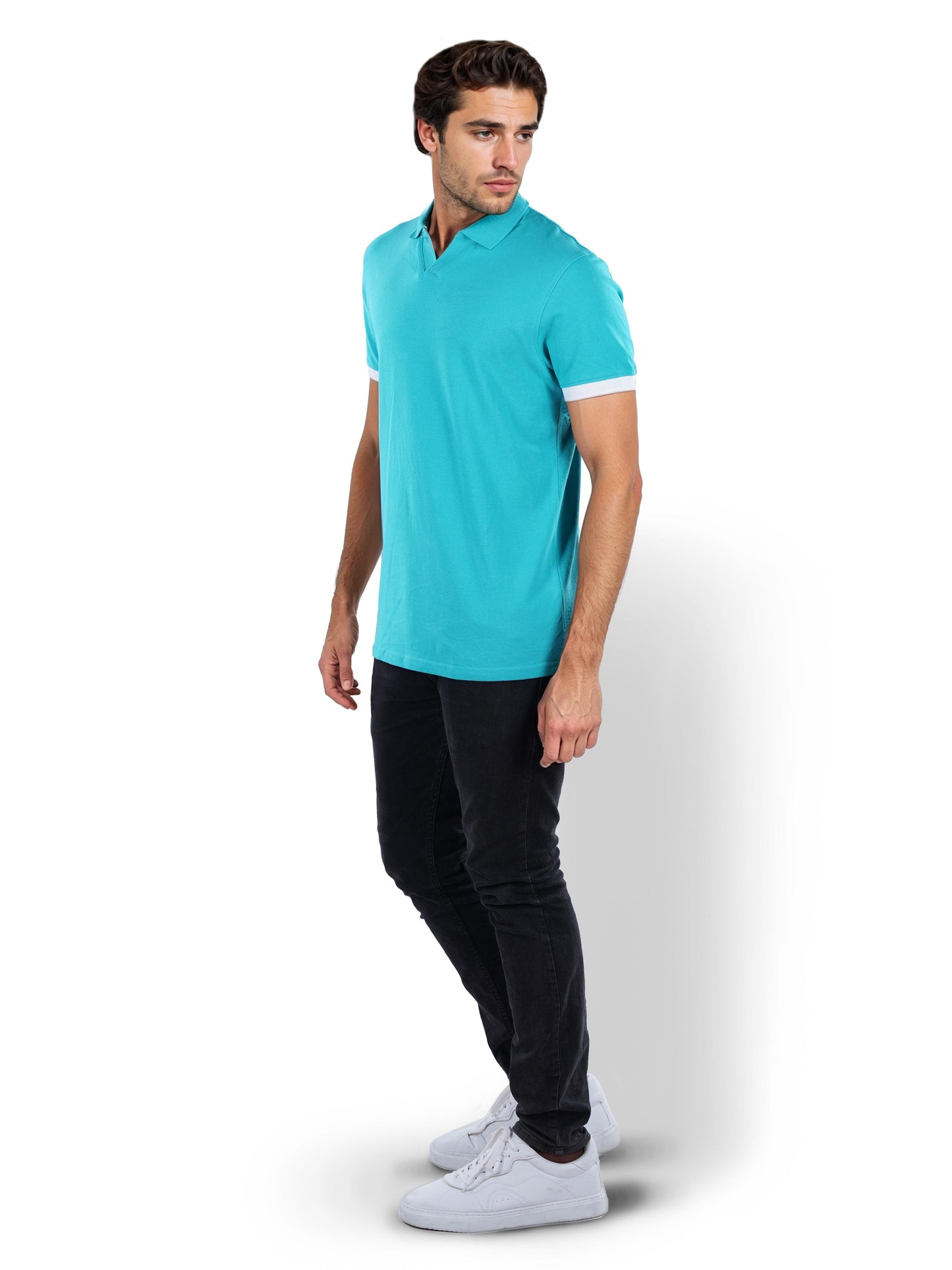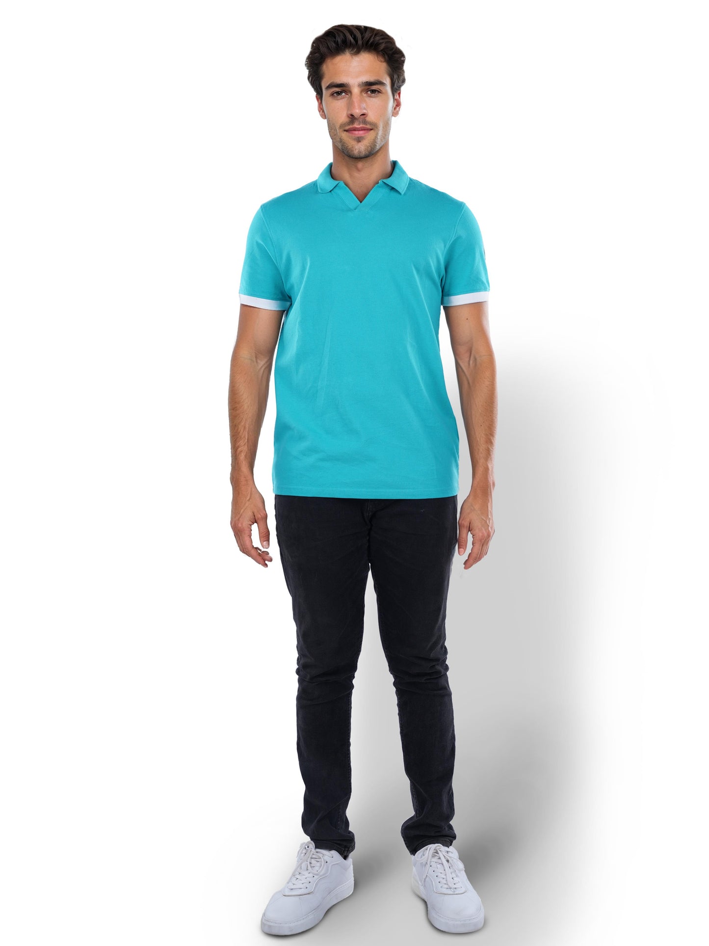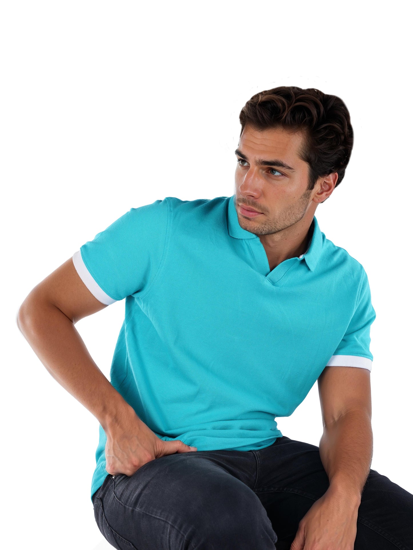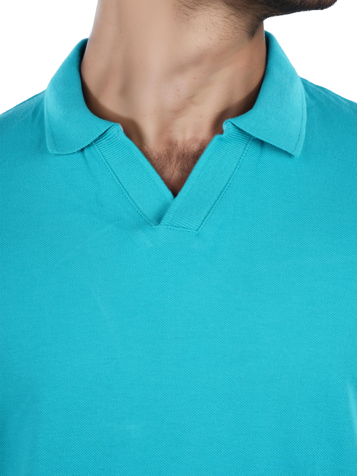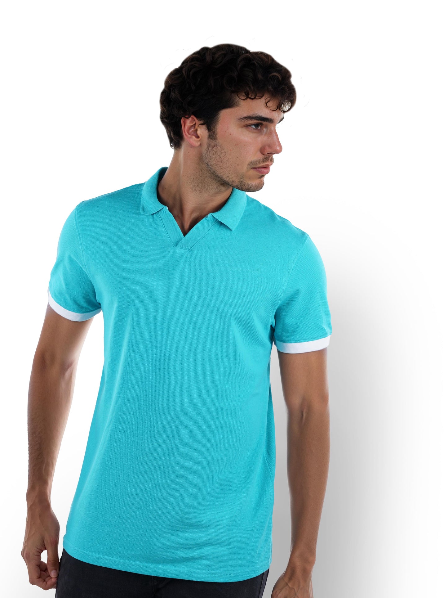 Shop Celio's blue polo collar t-shirt for men. Made with soft cotton, this regular fit tee features short sleeves, perfect for casual outings. Disclaimer: All other items in the image are only for display purposes and will not be a part of the delivery content. Product colour may slightly vary due to photographic lighting sources. Country of Origin - India.