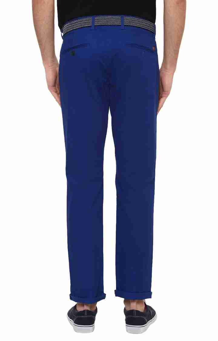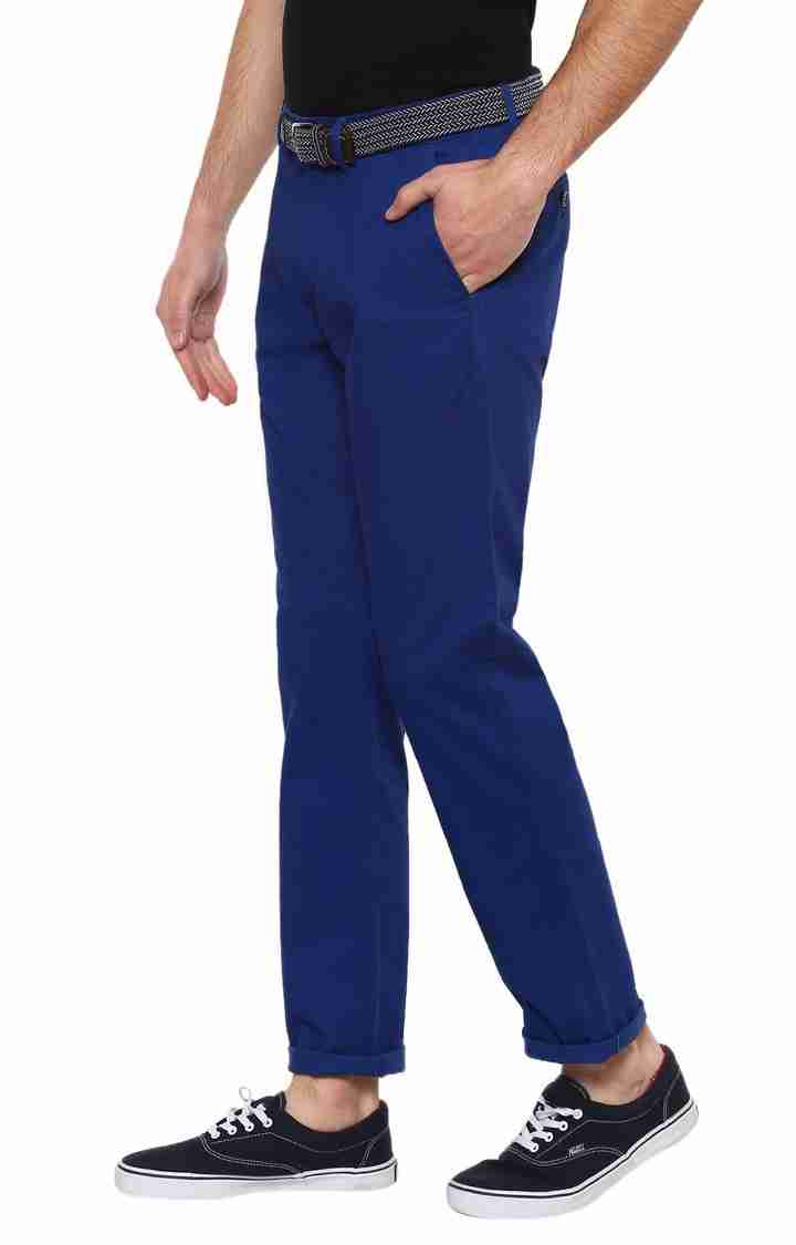 Elevate your casual wardrobe with Celio Men's Blue Solid Straight Chinos. Crafted from soft cotton, this blue pair offers comfort and style for any informal occasion. Disclaimer: All other items in the image are only for display purposes and will not be a part of the delivery content. Product colour may slightly vary due to photographic lighting sources. Country of Origin - India.