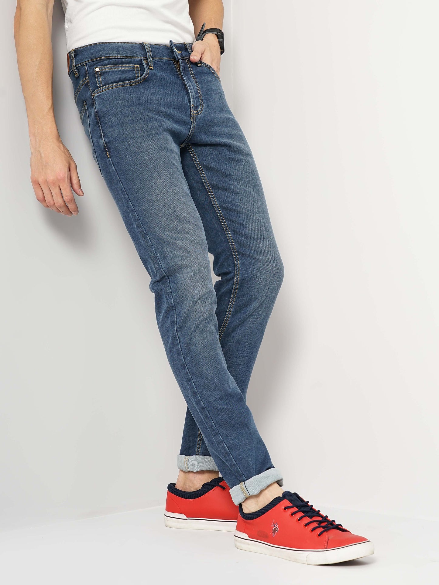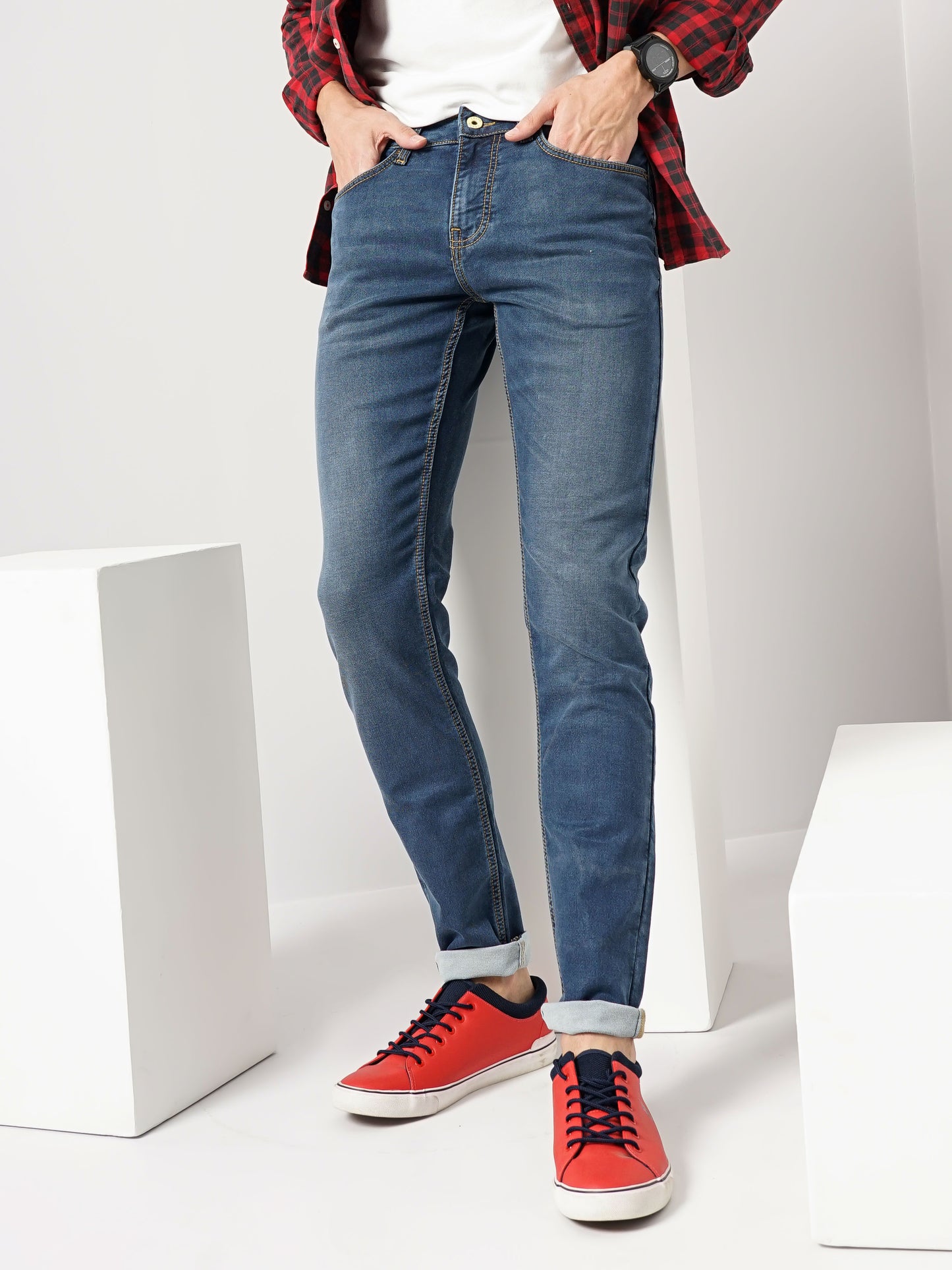 Discover Celio's solid skinny fit denim Jean in blue, crafted from soft cotton. Perfect for casual occasions, these Jean effortlessly combine style and comfort. Disclaimer: All other items in the image are only for display purposes and will not be a part of the delivery content. Product colour may slightly vary due to photographic lighting sources. Country of Origin - India.