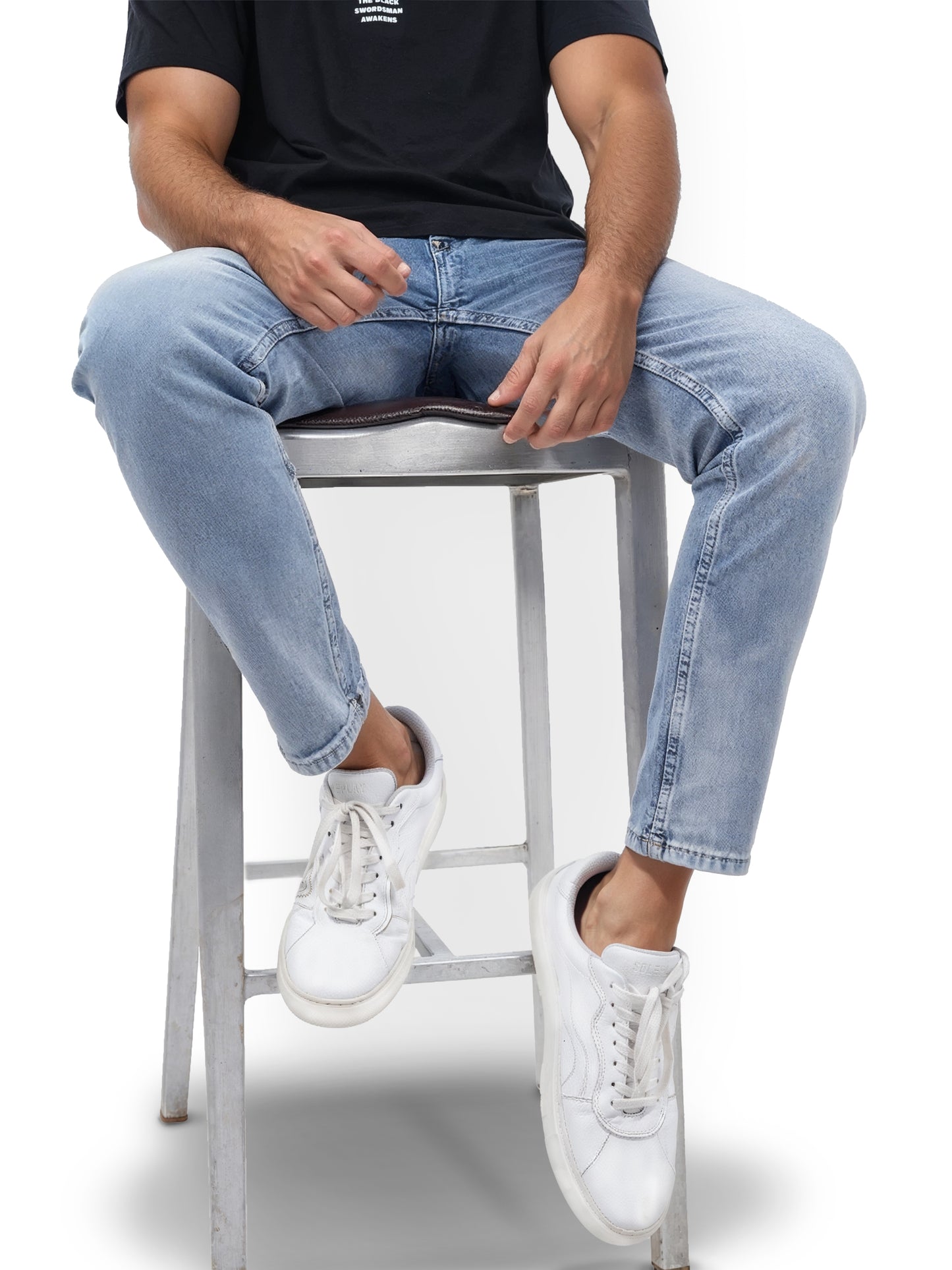 Men's blue solid skinny fit ankle length Jean by Celio, crafted from comfortable cotton. Perfect for casual occasions, these Jean offer a stylish and modern look. Disclaimer: All other items in the image are only for display purposes and will not be a part of the delivery content. Product colour may slightly vary due to photographic lighting sources. Country of Origin - India.