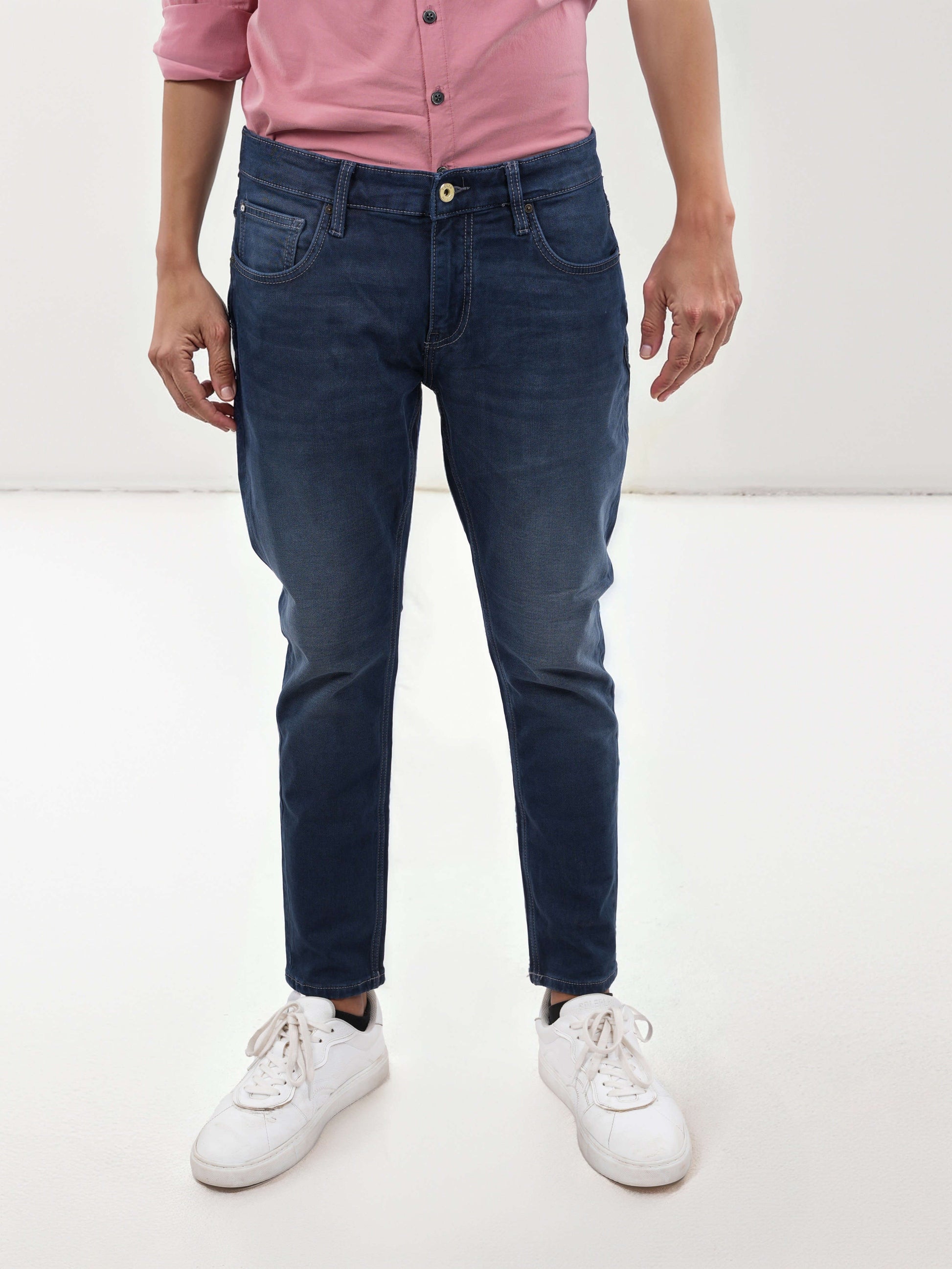 Elevate your casual wardrobe with Celio's blue solid skinny fit jeans for men. Made from premium cotton, these stylish jeans ensure comfort and a trendy look for any occasion. Disclaimer: All other items in the image are only for display purposes and will not be a part of the delivery content. Product colour may slightly vary due to photographic lighting sources. Country of Origin - India.