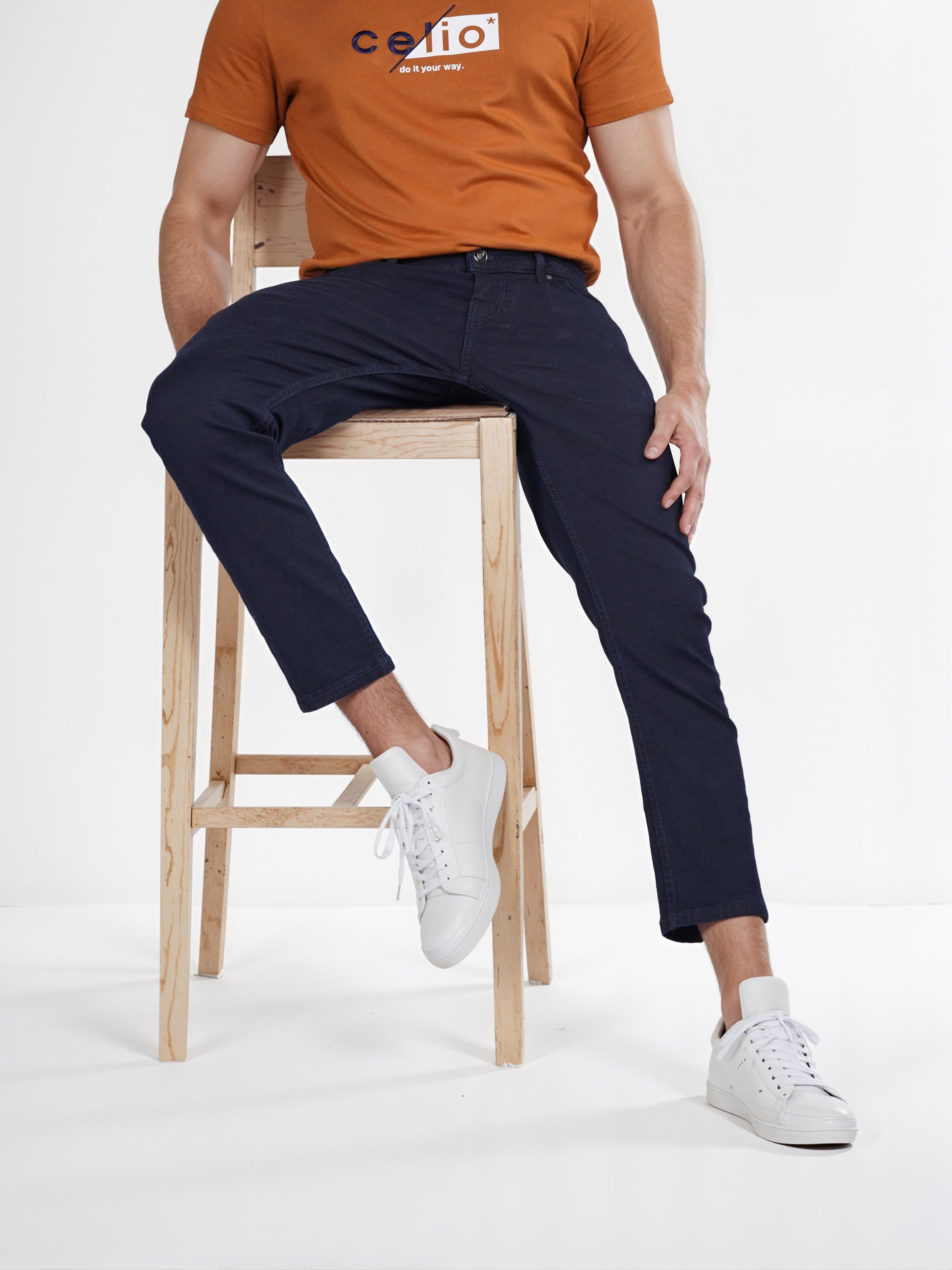 Discover stylish comfort with Celio's blue solid skinny fit ankle-length Jean for men. Made from soft cotton, these casual Jean are perfect for everyday wear. Disclaimer: All other items in the image are only for display purposes and will not be a part of the delivery content. Product colour may slightly vary due to photographic lighting sources. Country of Origin - India.