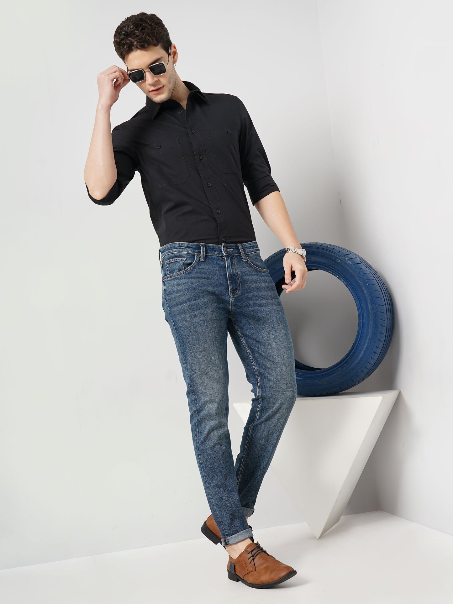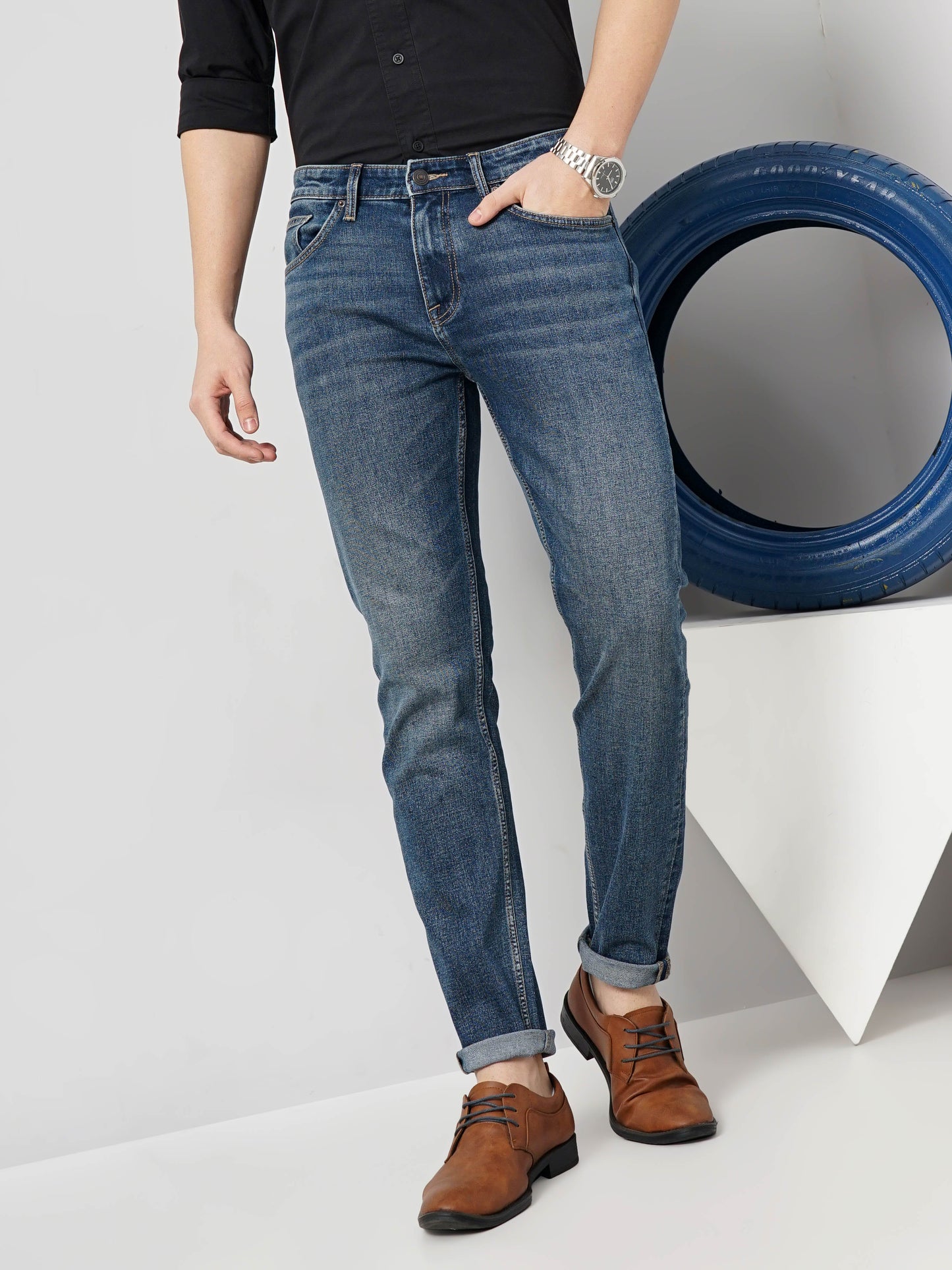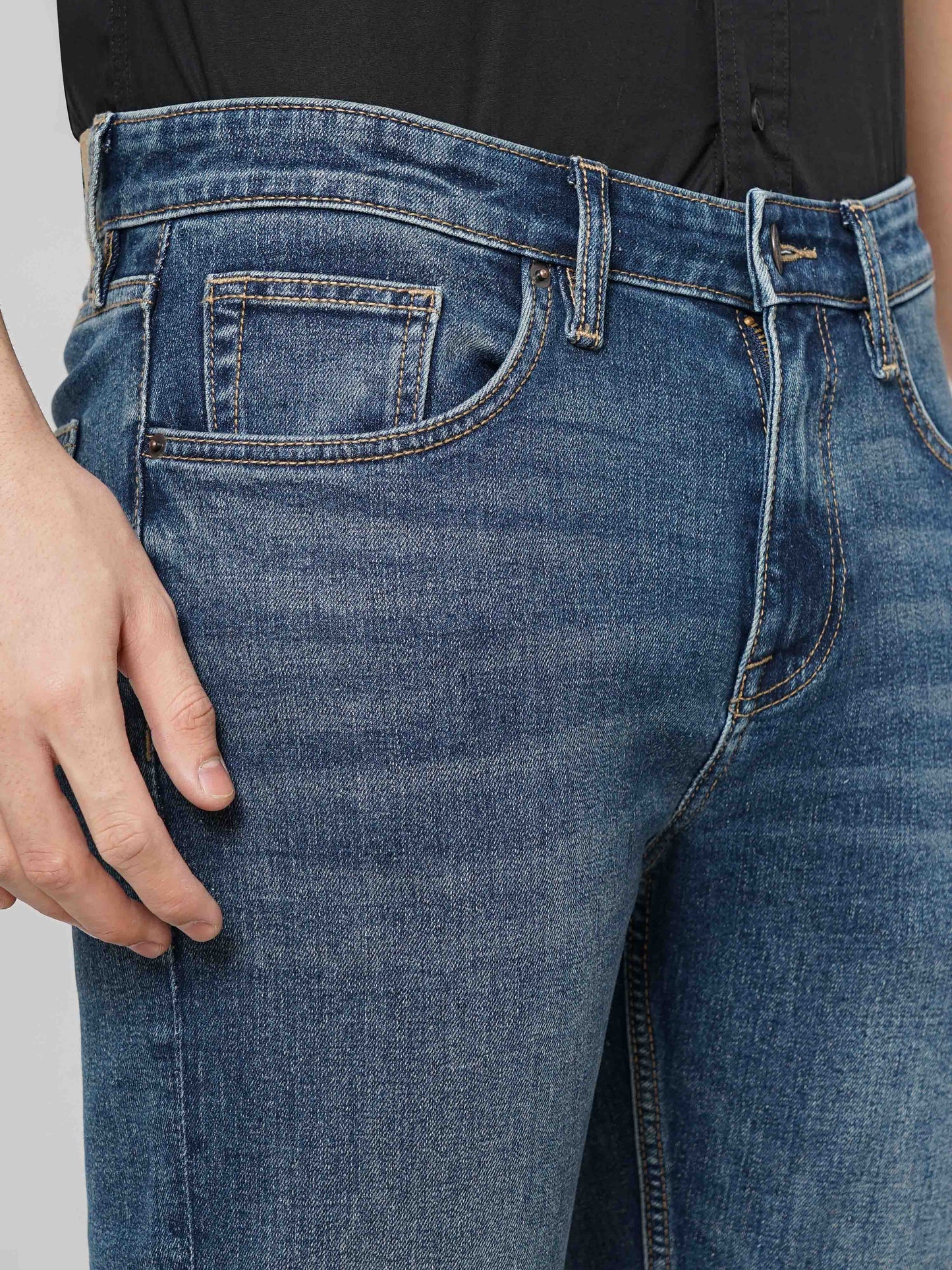 Discover comfort and style with Celio's blue solid slim fit denim Jean for men. Made from cotton stretch twill, perfect for casual occasions. Elevate your wardrobe today! Disclaimer: All other items in the image are only for display purposes and will not be a part of the delivery content. Product colour may slightly vary due to photographic lighting sources. Country of Origin - India.
