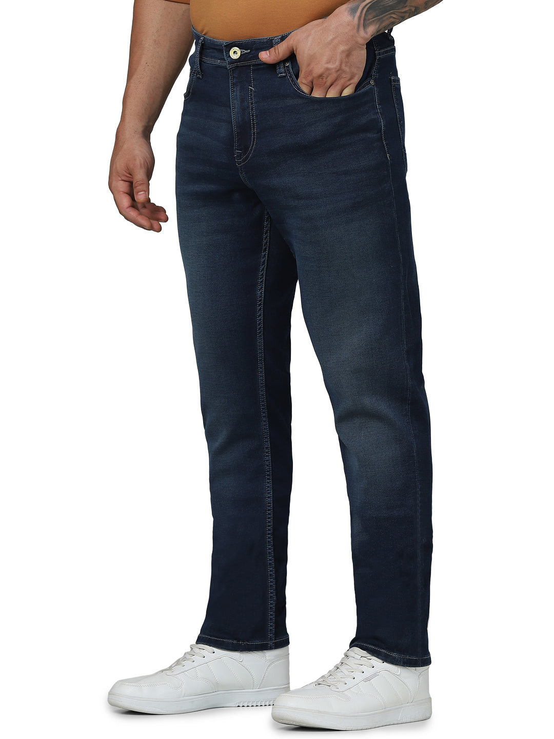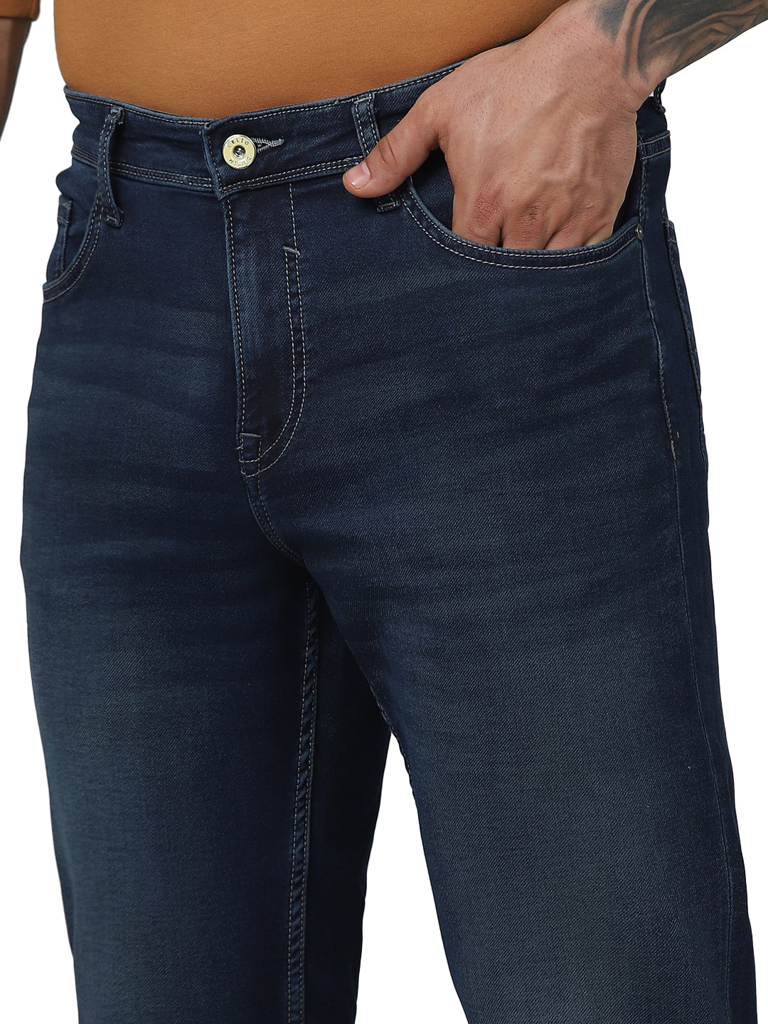 Celio Men Blue Solid Slim Fit Jean made of cotton knit fabric, perfect for casual occasions. Stylish and comfortable, suitable for the modern man's wardrobe. Disclaimer: All other items in the image are only for display purposes and will not be a part of the delivery content. Product colour may slightly vary due to photographic lighting sources. Country of Origin - India.