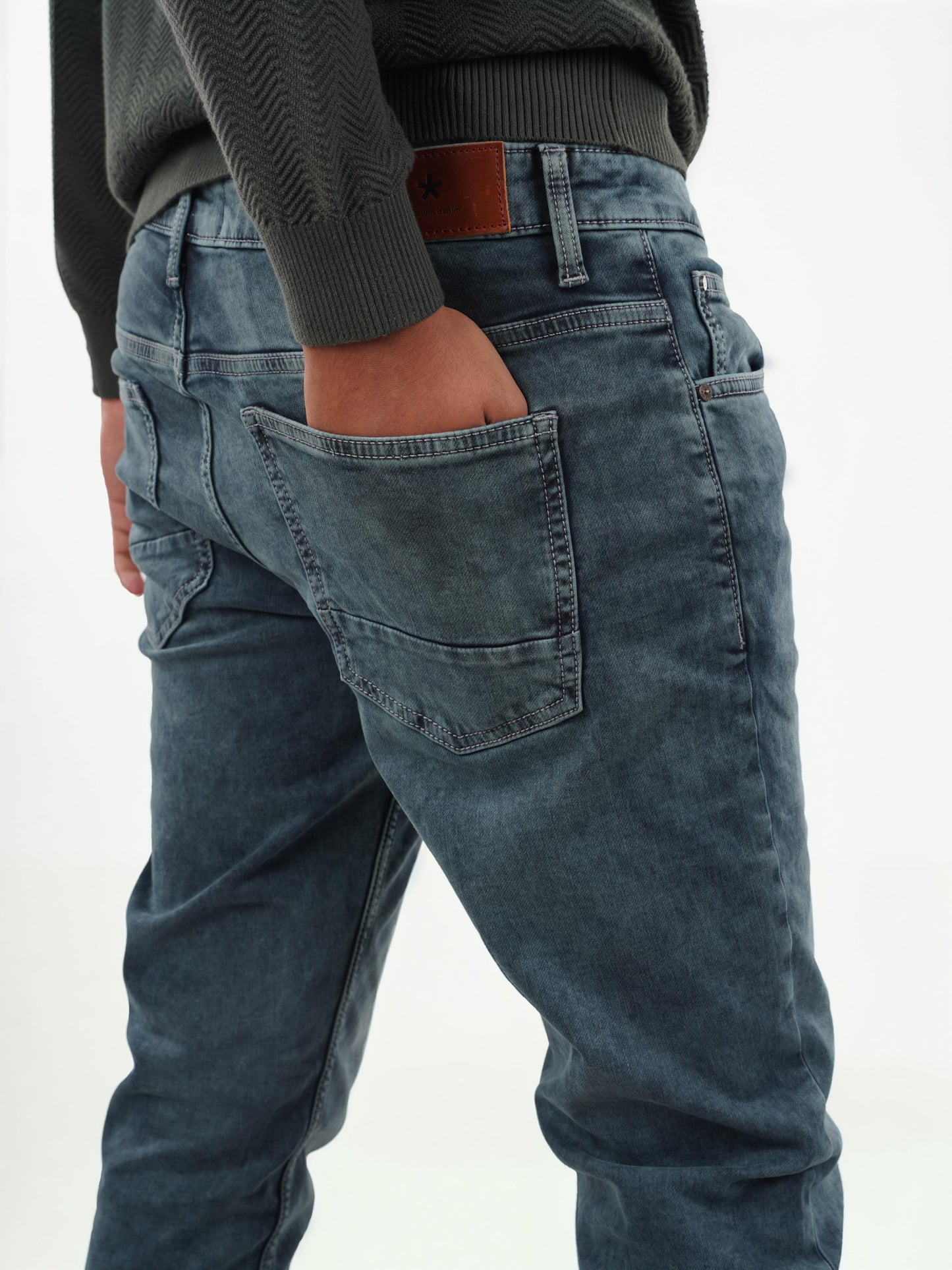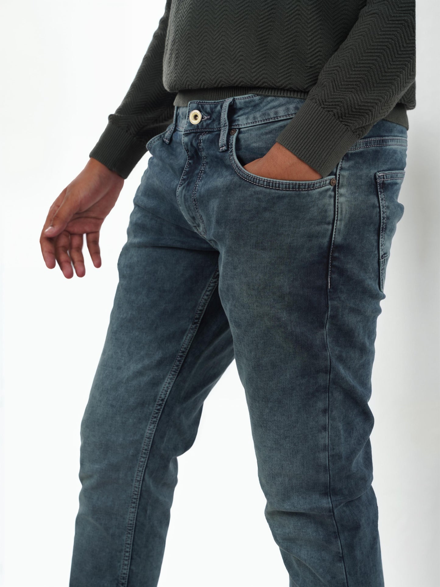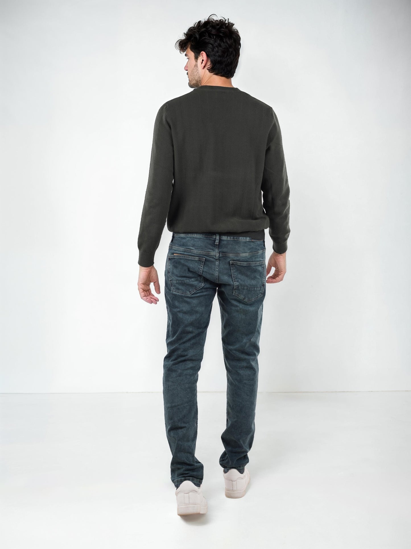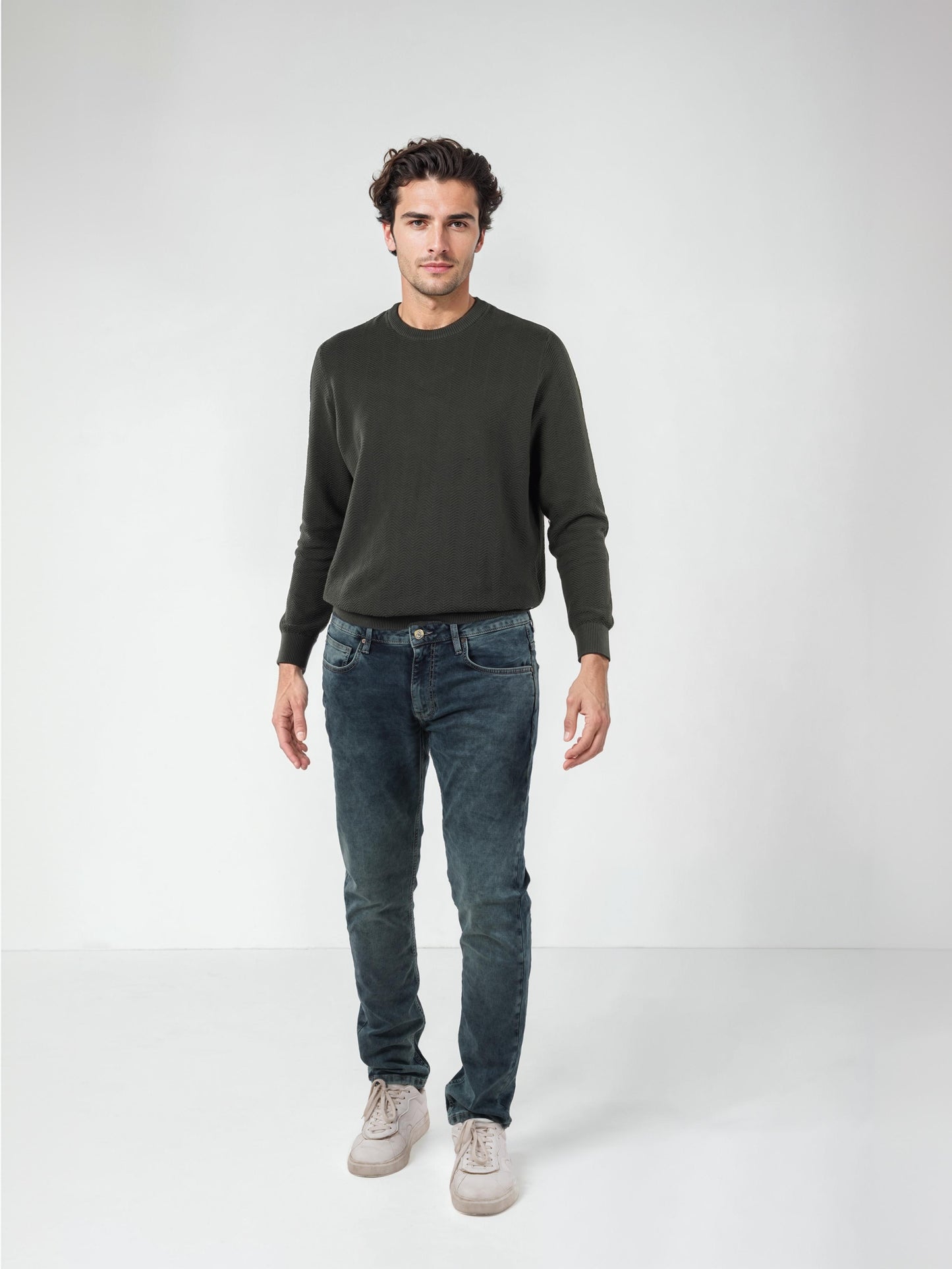 Upgrade your casual wardrobe with Celio's Men Blue Solid Slim Fit Cotton Knit Dobby Jean. Comfort meets style in this essential piece, perfect for everyday wear. Disclaimer: All other items in the image are only for display purposes and will not be a part of the delivery content. Product colour may slightly vary due to photographic lighting sources. Country of Origin - India.