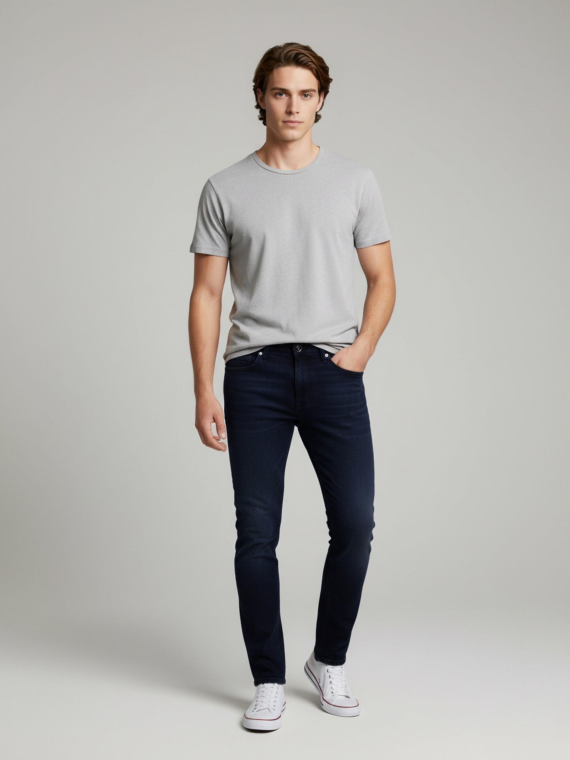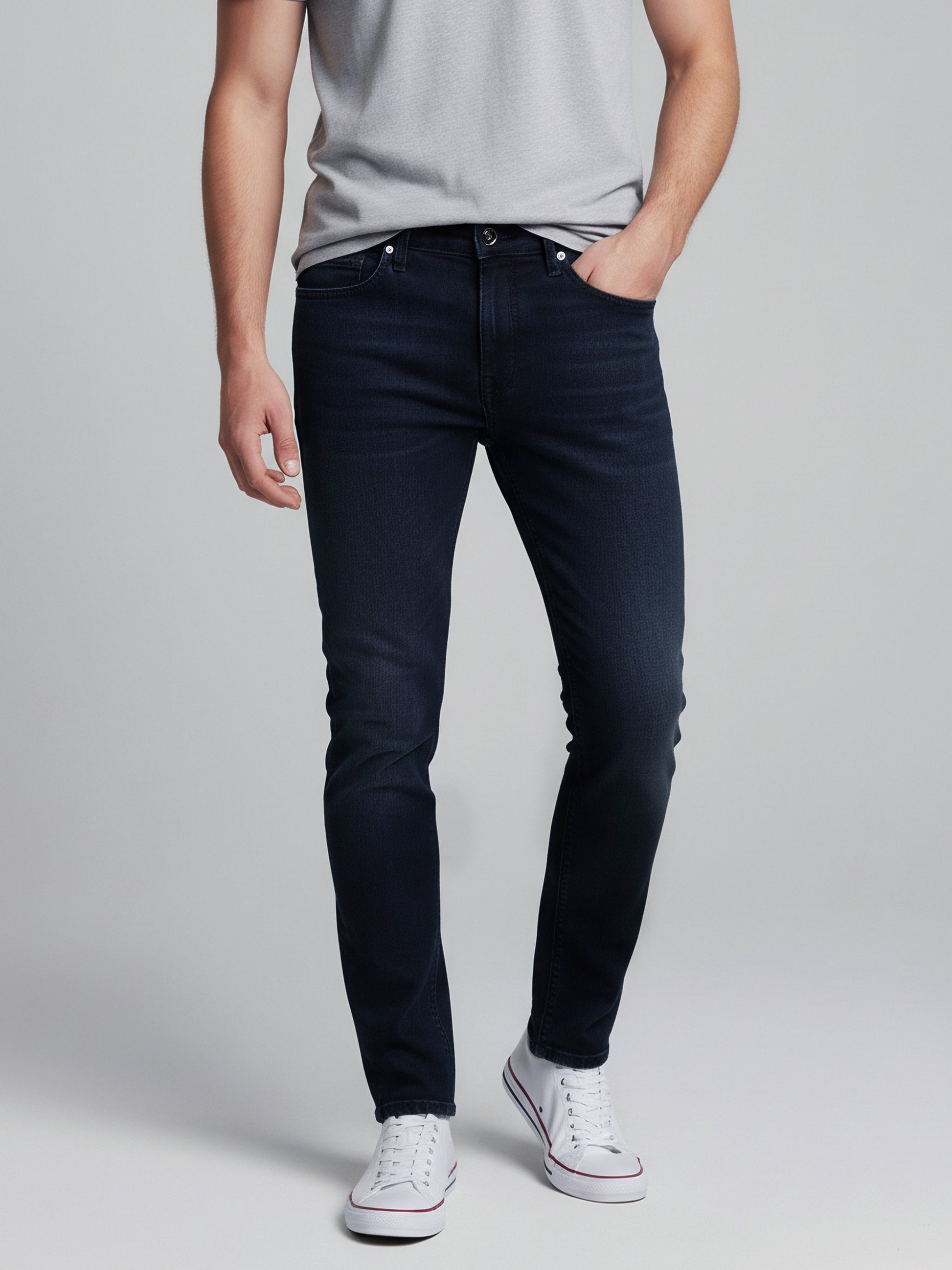 Discover Celio Men Blue Solid Slim Cotton Twill Denim Jeans, perfect for casual occasions. Crafted from premium cotton for comfort and style. Disclaimer: All other items in the image are only for display purposes and will not be a part of the delivery content. Product colour may slightly vary due to photographic lighting sources. Country of Origin - India.