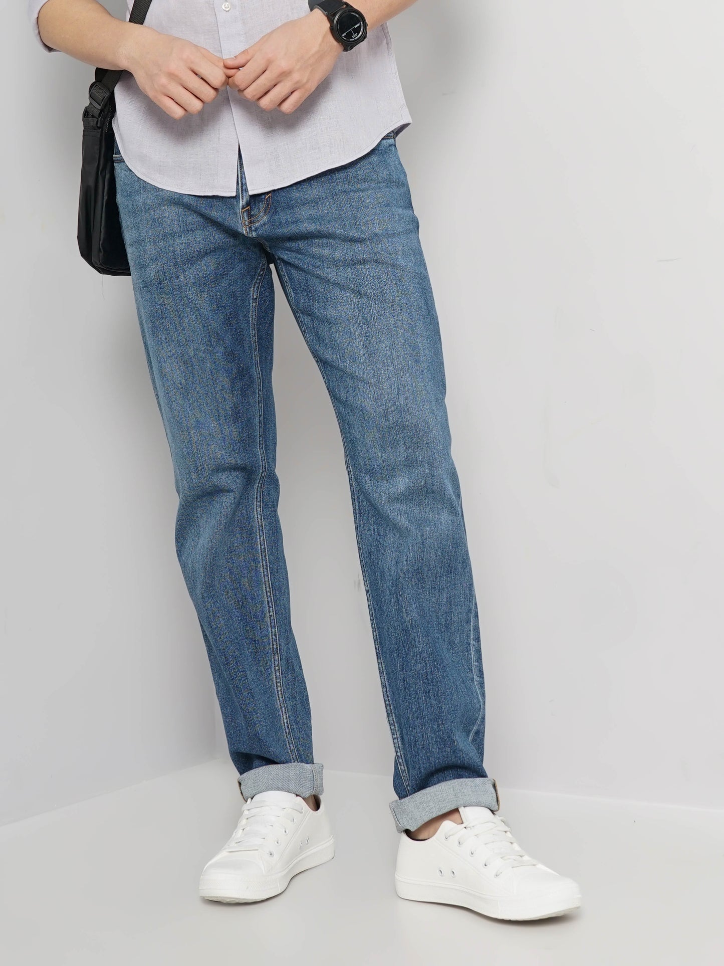 Explore comfort with Celio's blue solid straight fit cotton twill denim Jean for men. Perfect for casual occasions, these Jean combine style and functionality effortlessly. Disclaimer: All other items in the image are only for display purposes and will not be a part of the delivery content. Product colour may slightly vary due to photographic lighting sources. Country of Origin - India.