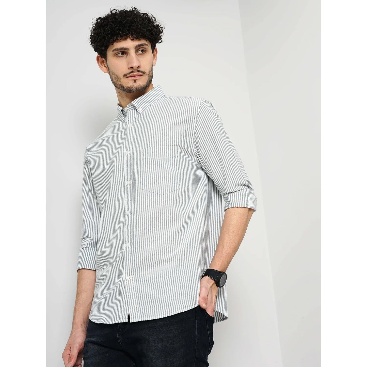 Elevate your casual style with the Celio Blue Cotton Oxford Shirt. Made from soft cotton, this long-sleeve shirt offers comfort and versatility for any occasion. Disclaimer: All other items in the image are only for display purposes and will not be a part of the delivery content. Product colour may slightly vary due to photographic lighting sources. Country of Origin - India.