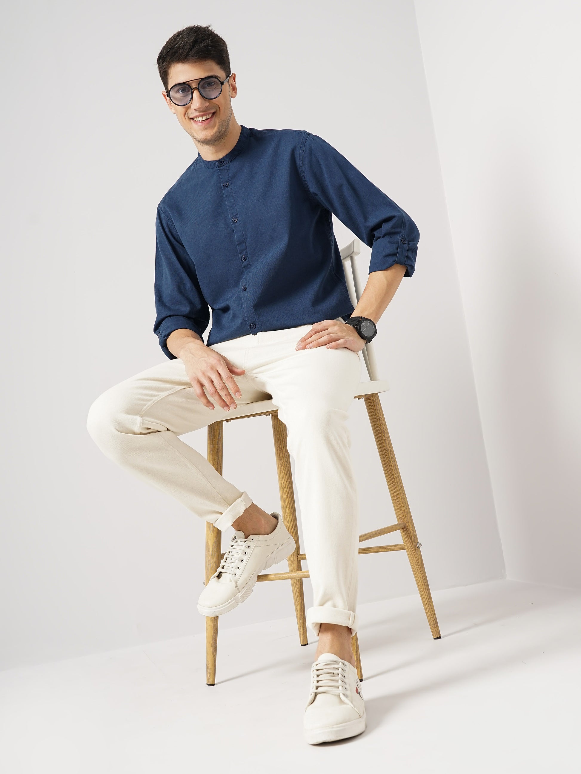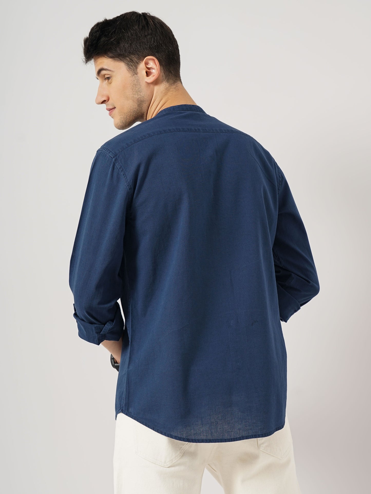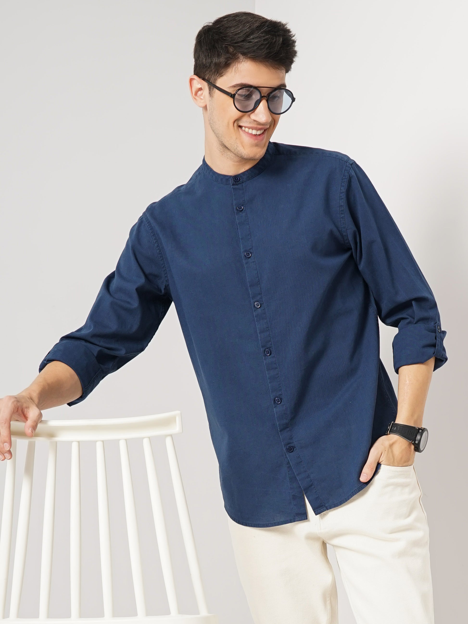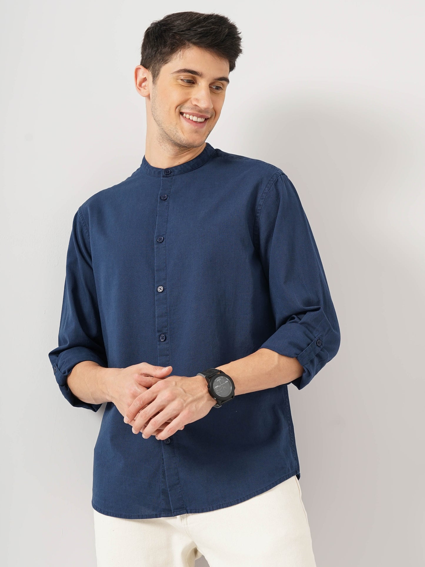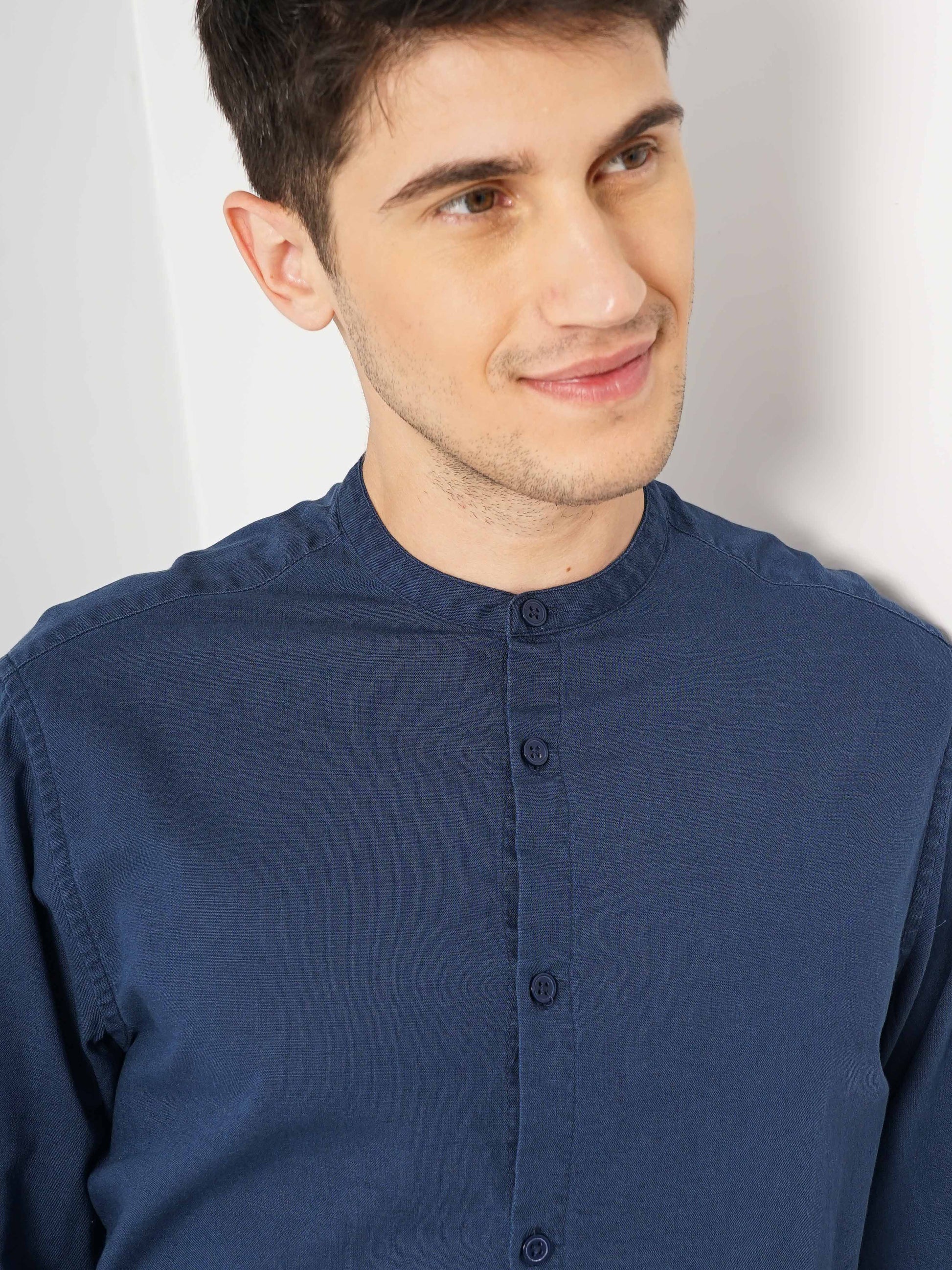 Elevate your casual wardrobe with the Celio Men Solid Regular Fit Cotton Linen Shirt in blue. Crafted from breathable linen, it features long sleeves, perfect for any relaxed occasion. Disclaimer: All other items in the image are only for display purposes and will not be a part of the delivery content. Product colour may slightly vary due to photographic lighting sources. Country of Origin - India.