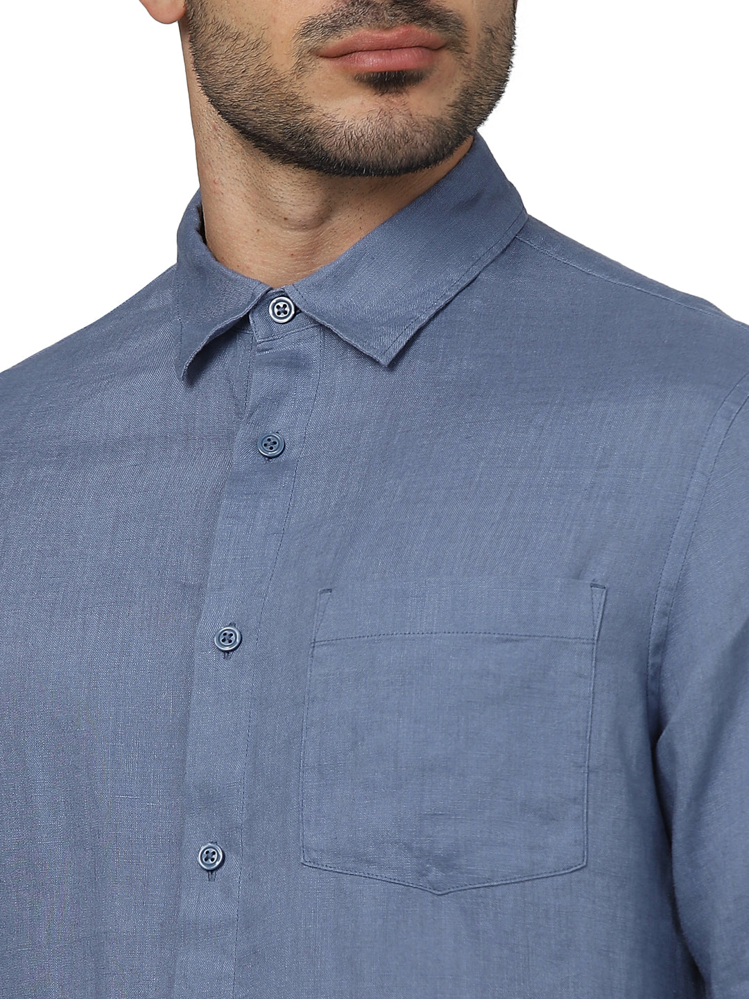 Elevate your casual wardrobe with the Celio Men Blue Linen Shirt. Featuring a spread collar and long sleeves, this regular fit shirt combines comfort and style effortlessly. Disclaimer: All other items in the image are only for display purposes and will not be a part of the delivery content. Product colour may slightly vary due to photographic lighting sources. Country of Origin - India.