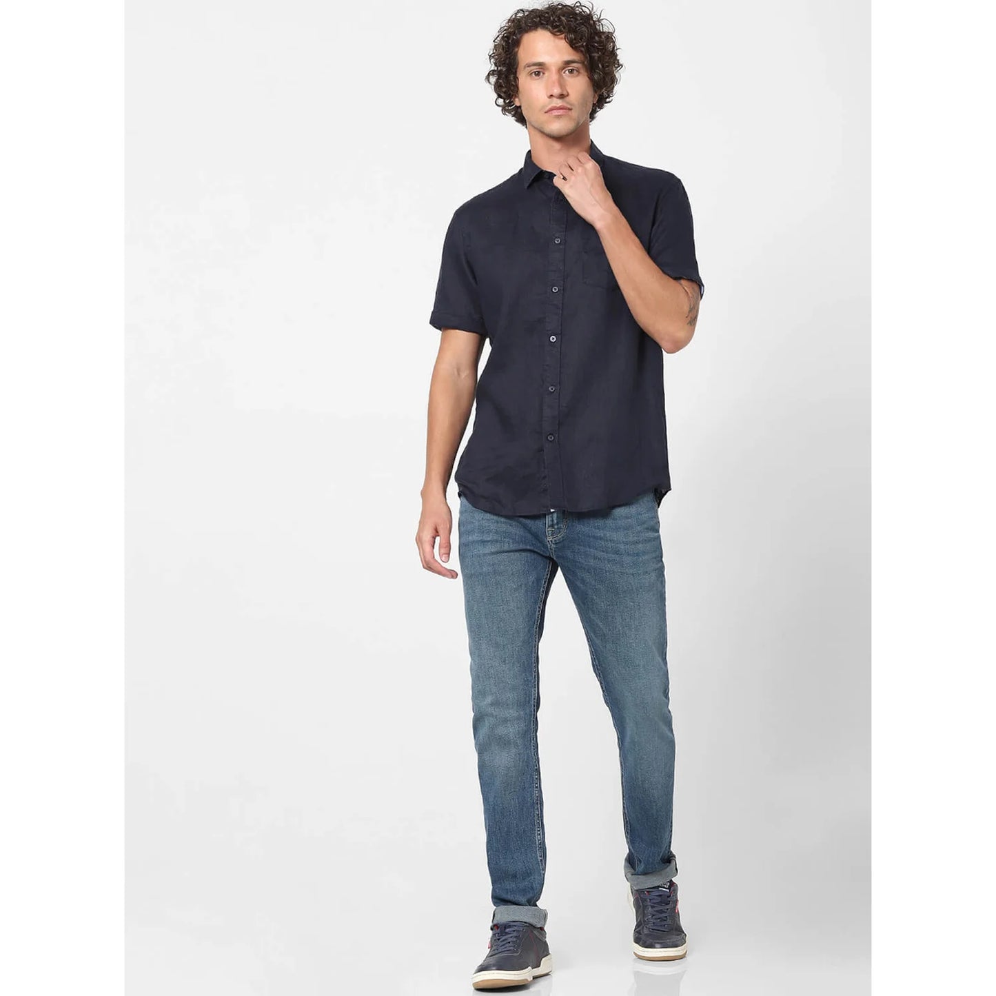 Shop the stylish Celio Men's blue Solid Casual Shirt, crafted from comfortable linen. Perfect for casual occasions, it features half sleeves and a classic blue design. Disclaimer: All other items in the image are only for display purposes and will not be a part of the delivery content. Product colour may slightly vary due to photographic lighting sources. Country of Origin - India.