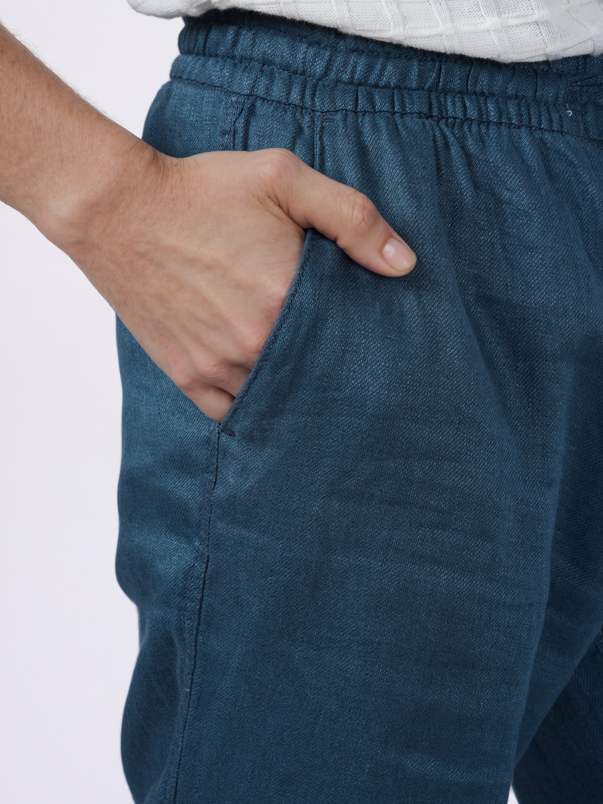 Celio* Men Blue Solid Straight Fit Linen Trousers