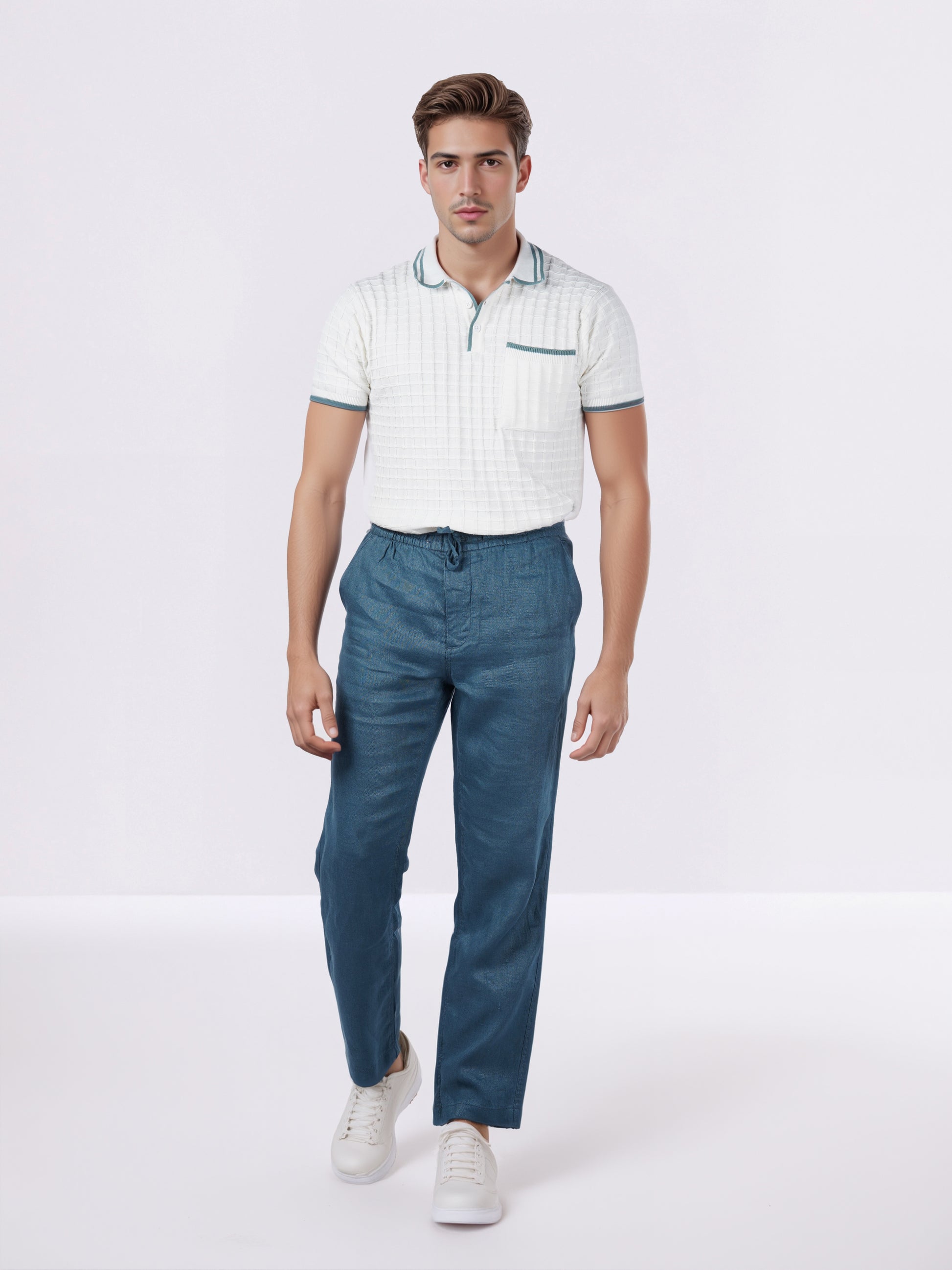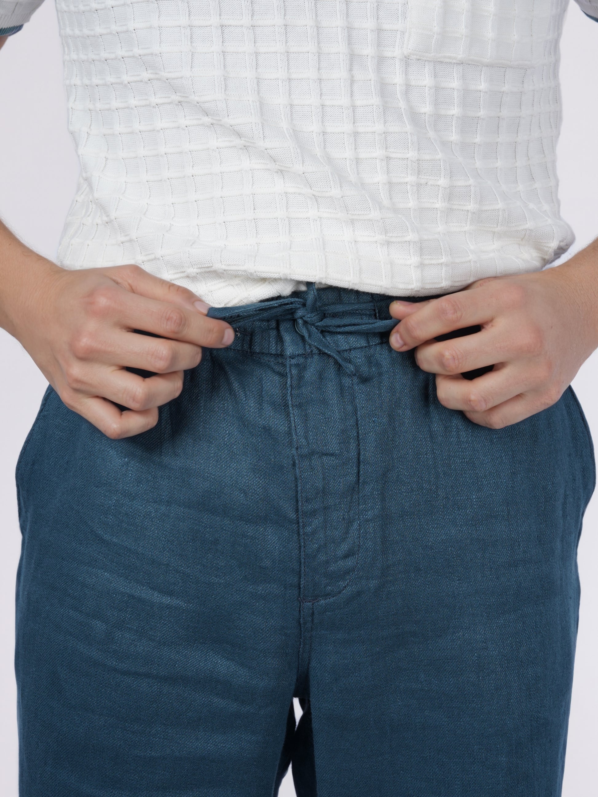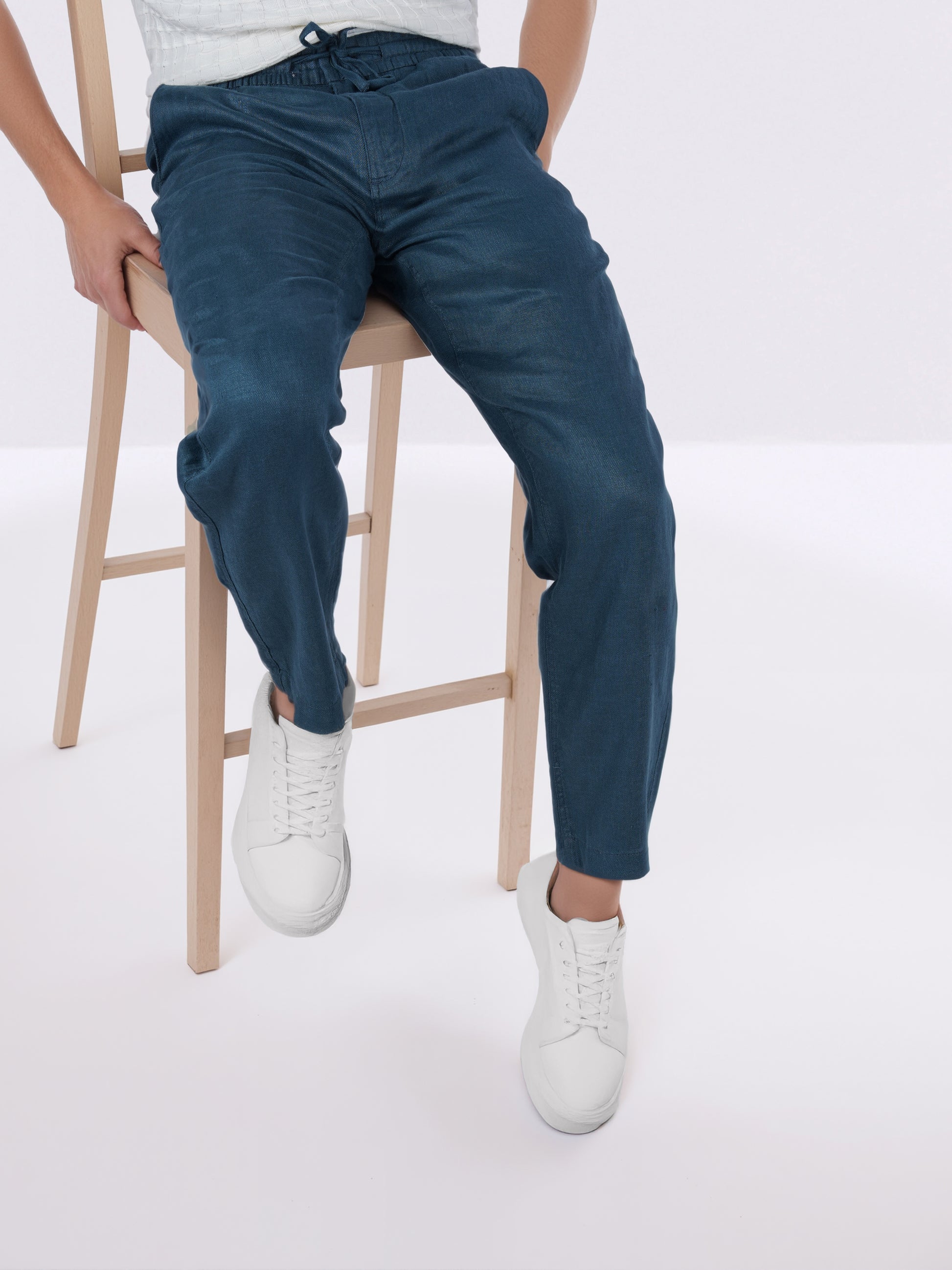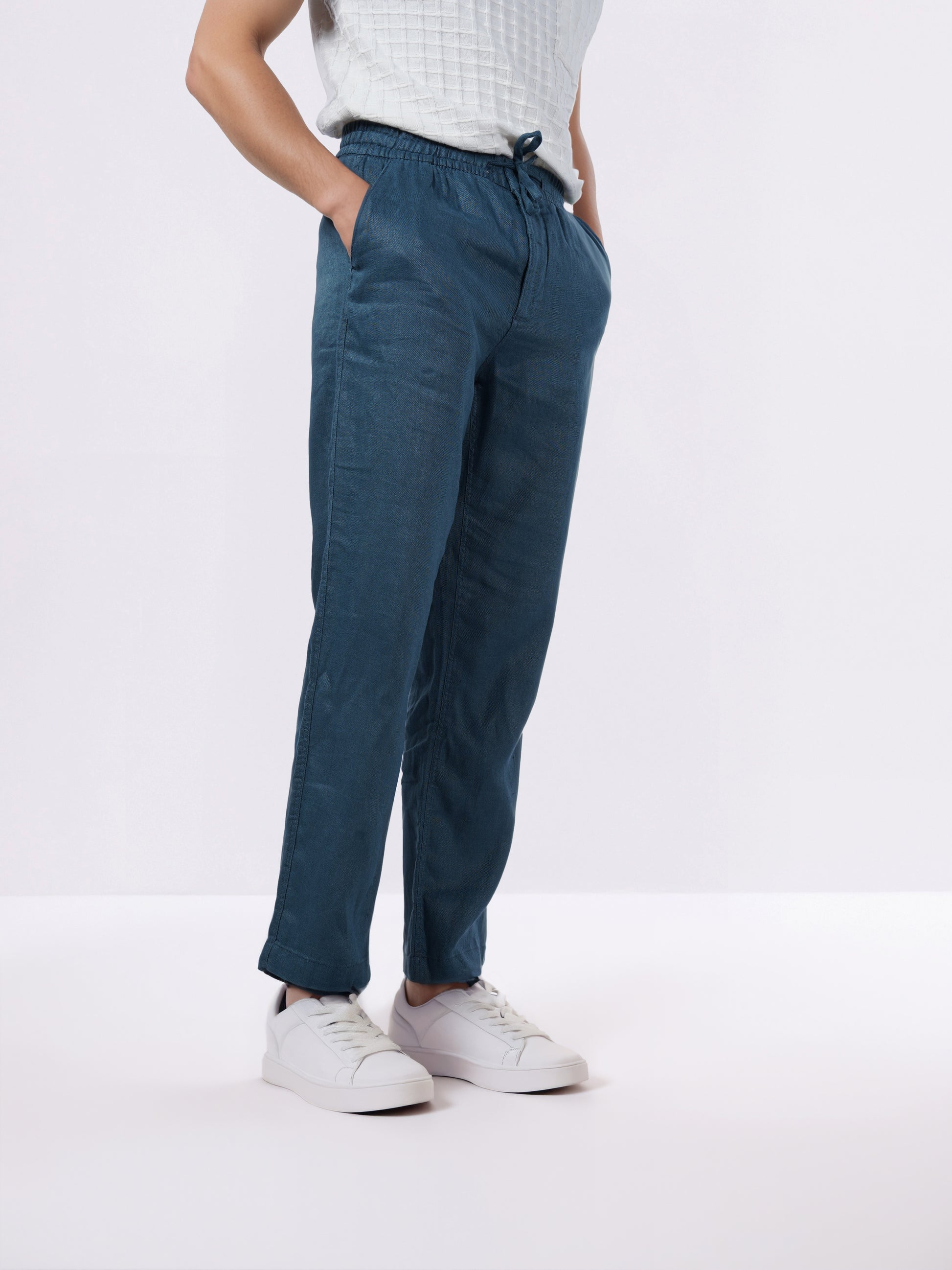 Explore comfort and style with Celio's Men Blue Solid Straight Fit Linen Trousers. Perfect for casual occasions, these trousers offer a relaxed fit and breathable linen fabric. Disclaimer: All other items in the image are only for display purposes and will not be a part of the delivery content. Product colour may slightly vary due to photographic lighting sources. Country of Origin - India.