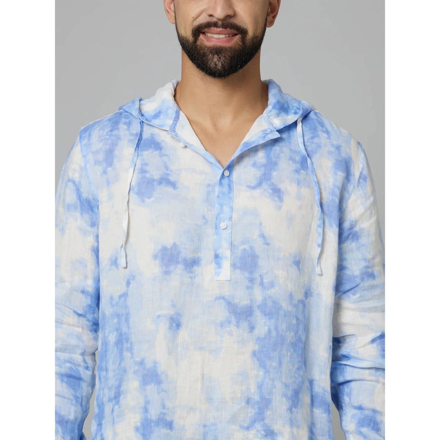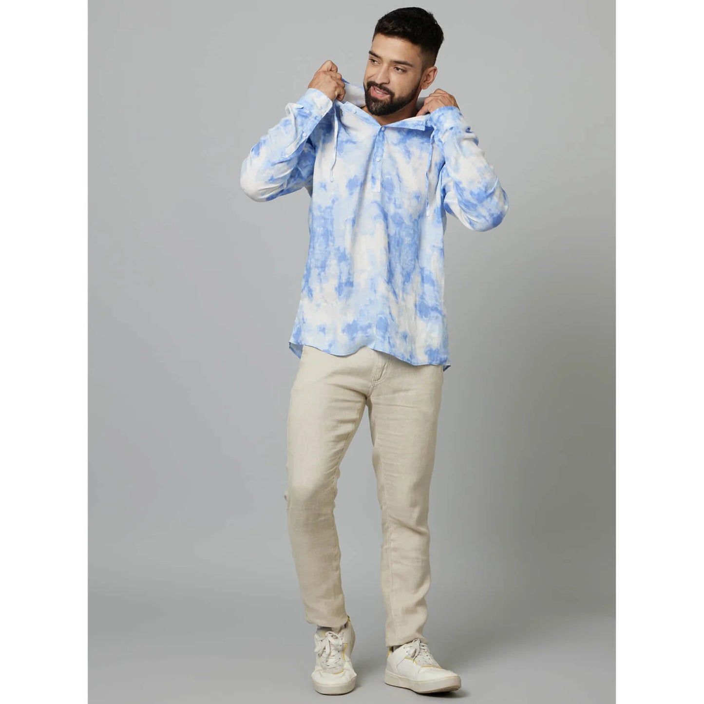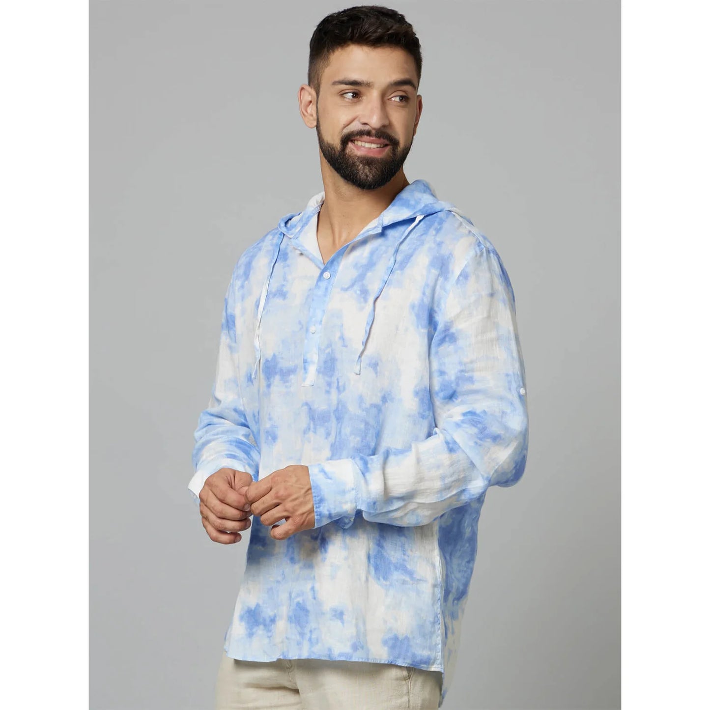 Celio* Tie Dye Regular Fit Linen Blue Shirt