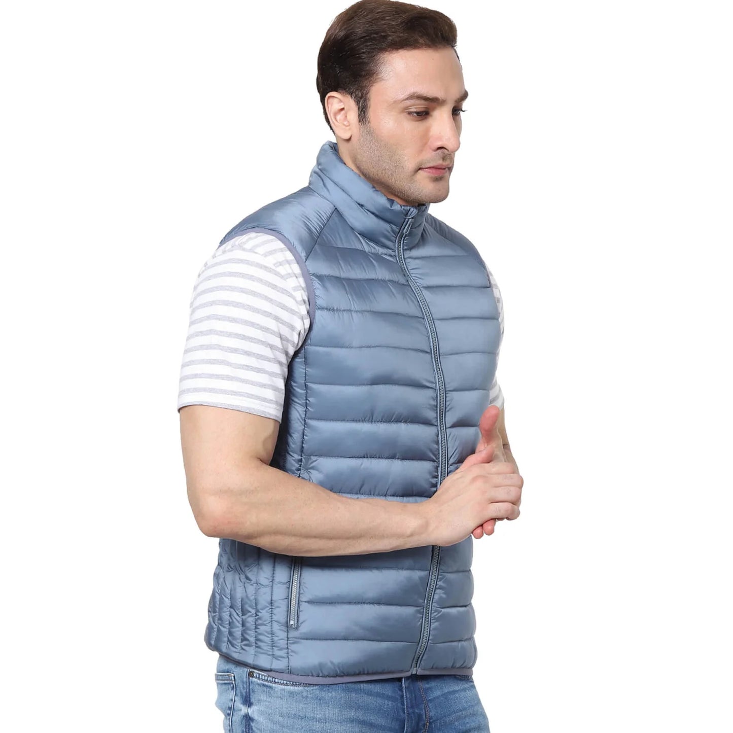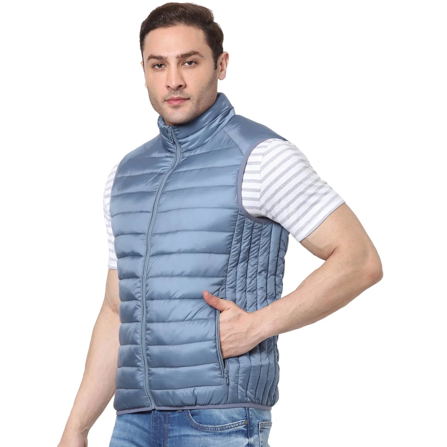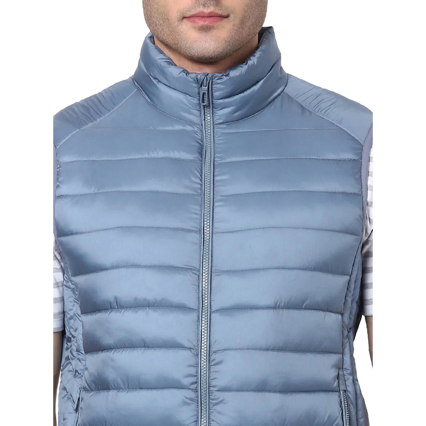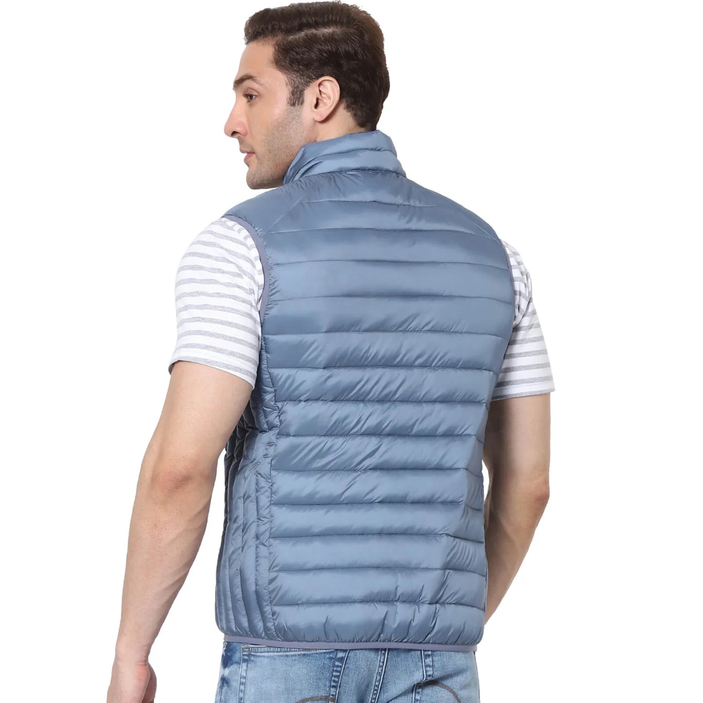 Stay stylish and comfortable with the Celio Men's Vulessin Gilet in Steel Blue. This sleeveless polyester piece is perfect for casual occasions, providing a modern, versatile look. Disclaimer: All other items in the image are only for display purposes and will not be a part of the delivery content. Product colour may slightly vary due to photographic lighting sources. Country of Origin - India.