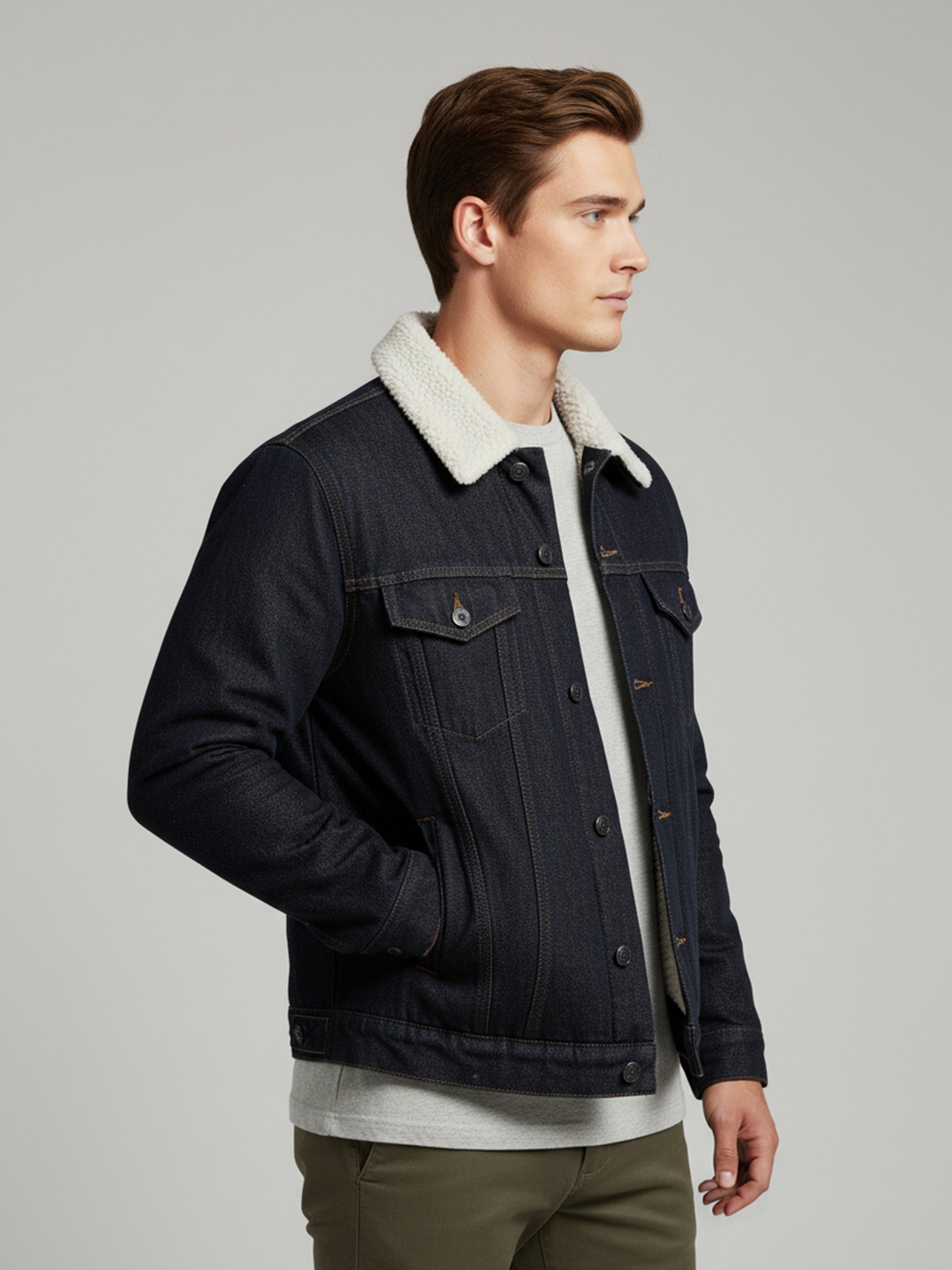 Stylish Celio men's denim jacket in solid blue, crafted from durable polyester. Ideal for casual occasions, featuring long sleeves and a regular fit for comfort. Disclaimer: All other items in the image are only for display purposes and will not be a part of the delivery content. Product colour may slightly vary due to photographic lighting sources. Country of Origin - India.