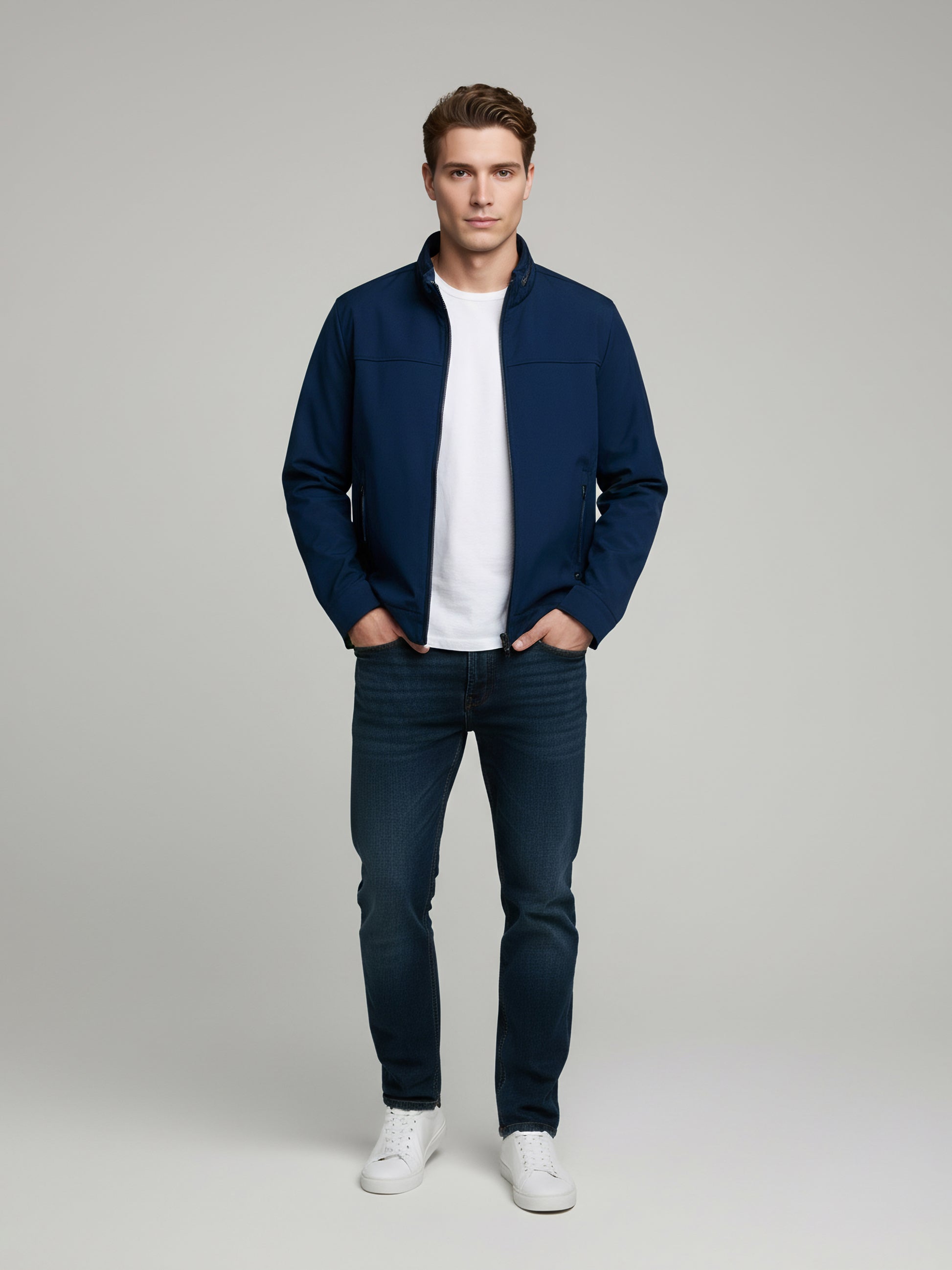 Discover the Celio Men's Blue Solid Biker Jacket, crafted from durable polyester. This regular fit jacket features long sleeves, perfect for casual outings. Disclaimer: All other items in the image are only for display purposes and will not be a part of the delivery content. Product colour may slightly vary due to photographic lighting sources. Country of Origin - India.