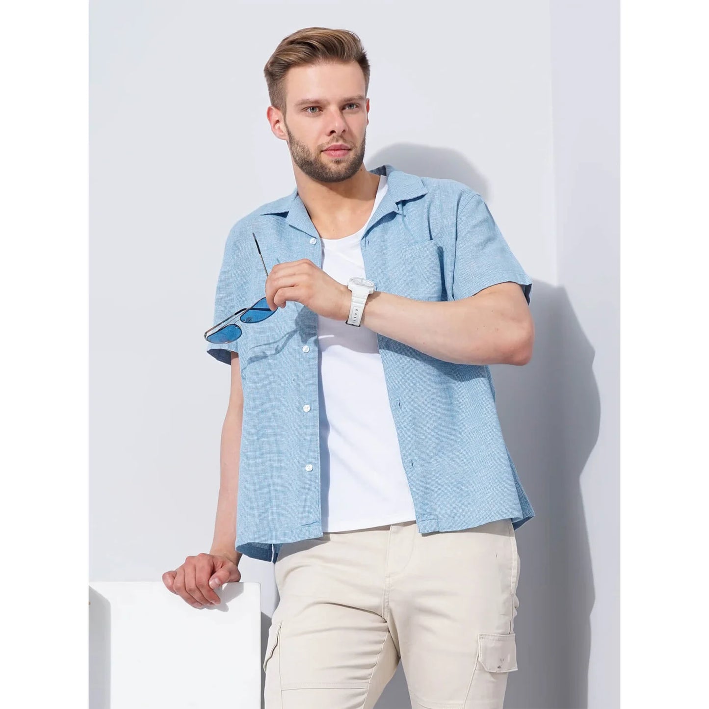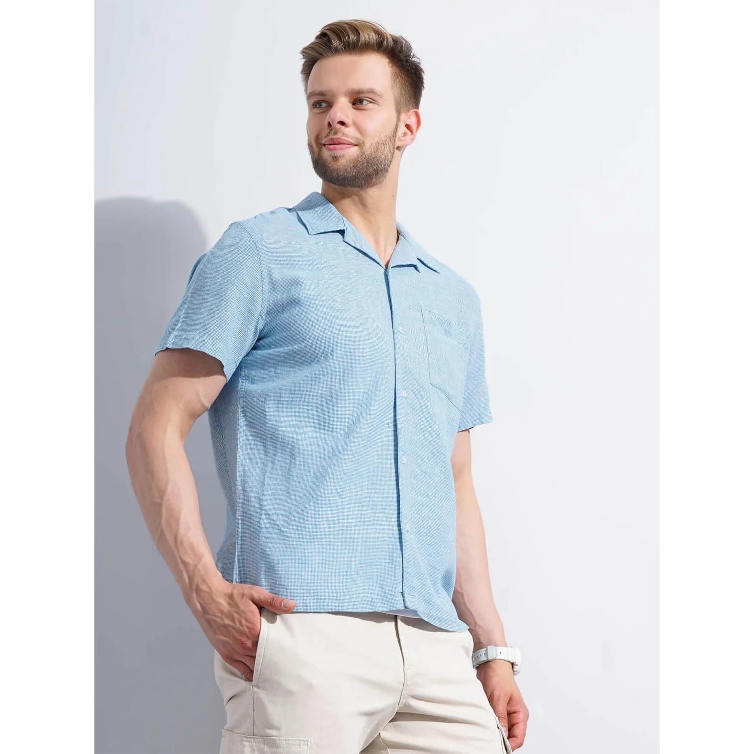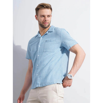 Elevate your casual wardrobe with the Celio Blue FATEXT shirt. Made from a soft cotton-linen blend, this Blue-colored half-sleeve shirt is perfect for men seeking style and comfort. Disclaimer: All other items in the image are only for display purposes and will not be a part of the delivery content. Product colour may slightly vary due to photographic lighting sources. Country of Origin - India.