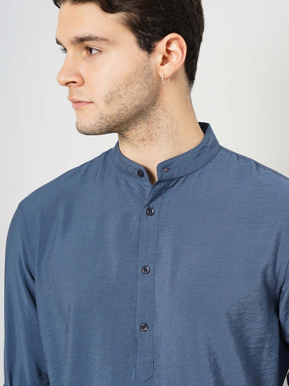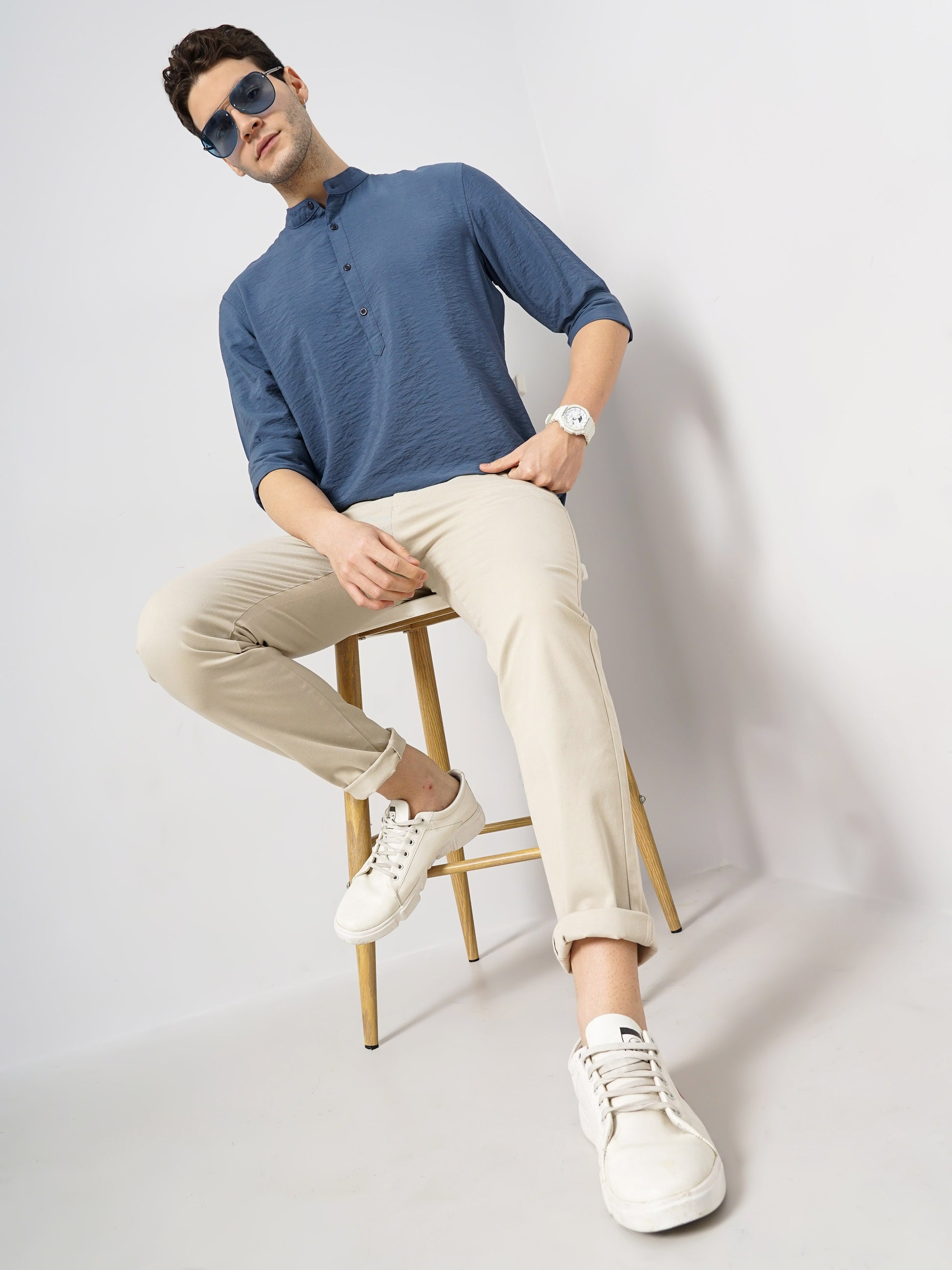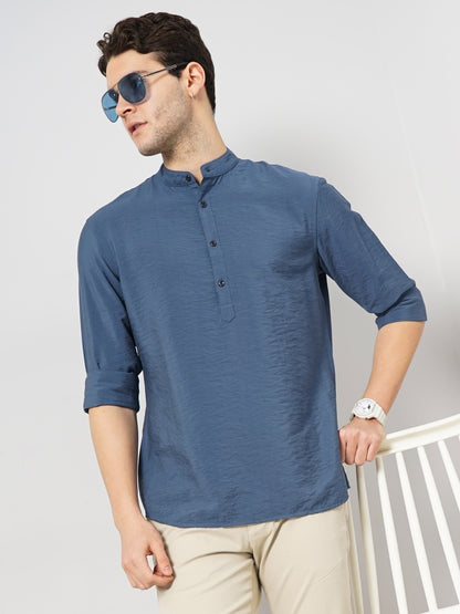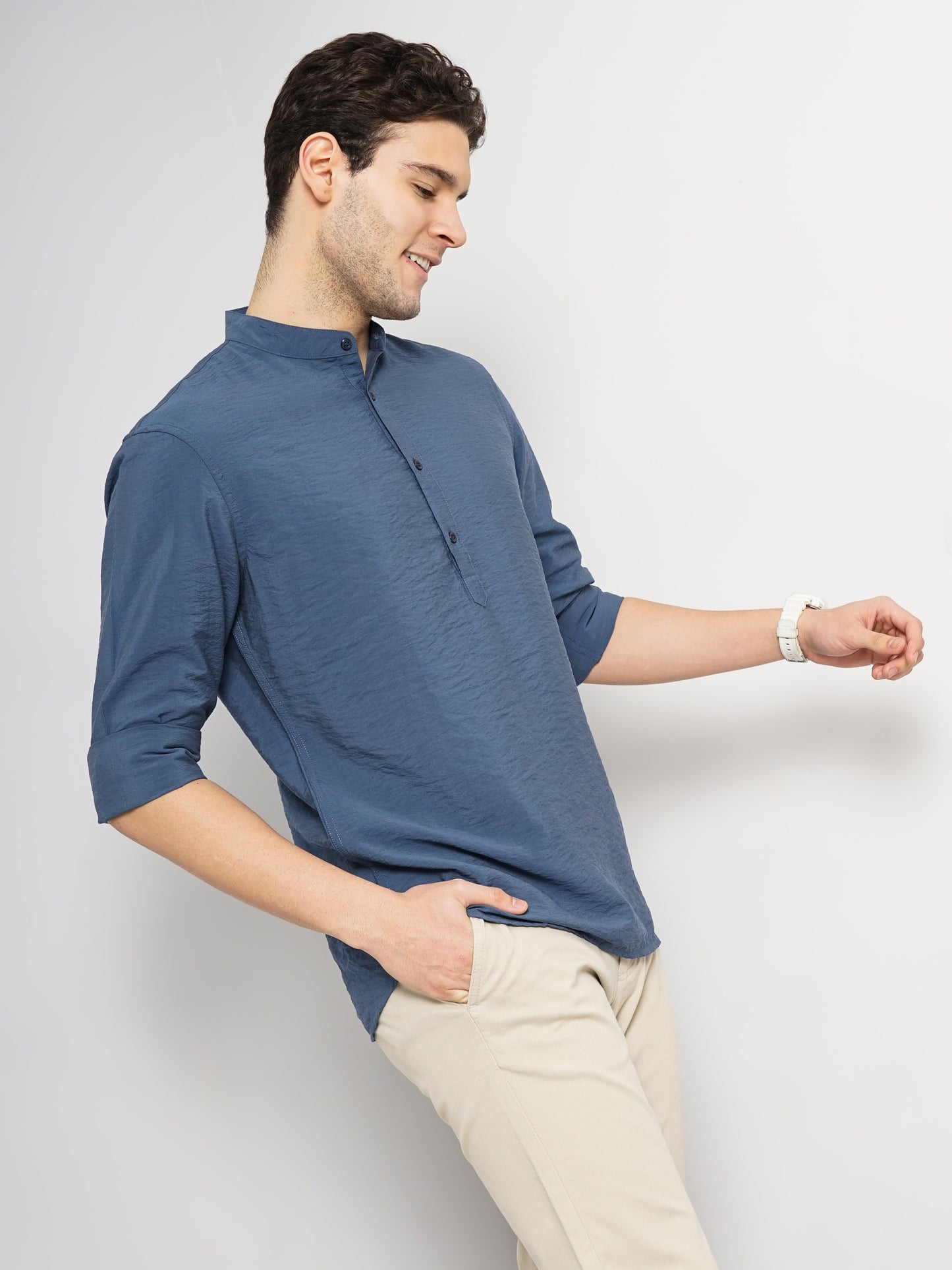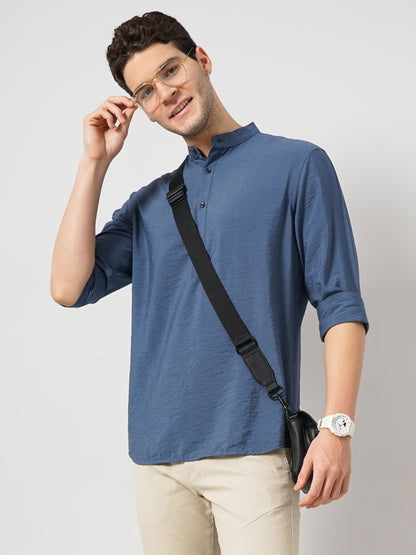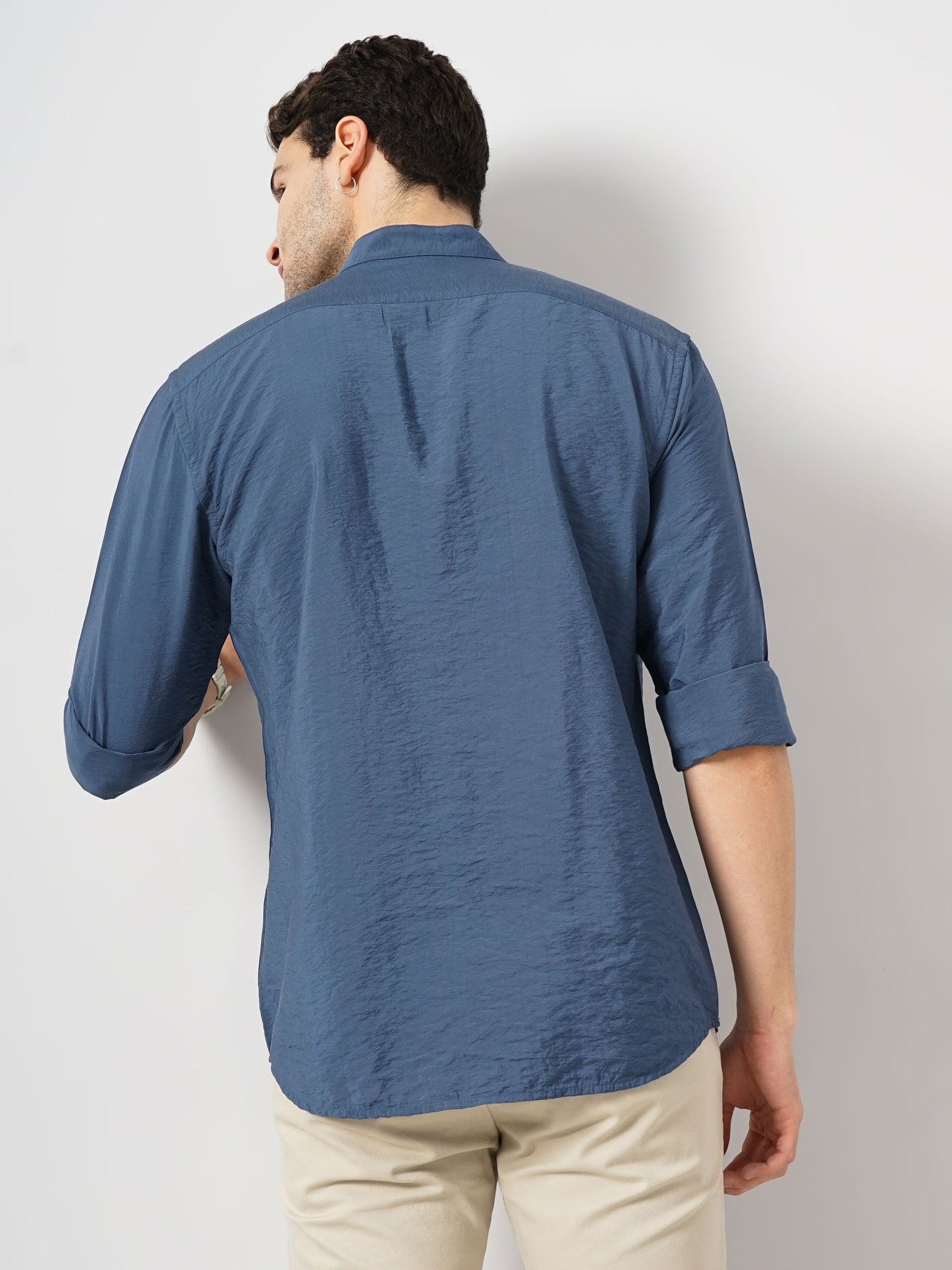 Celio* Solid Regular Fit Viscose Blue Shirt