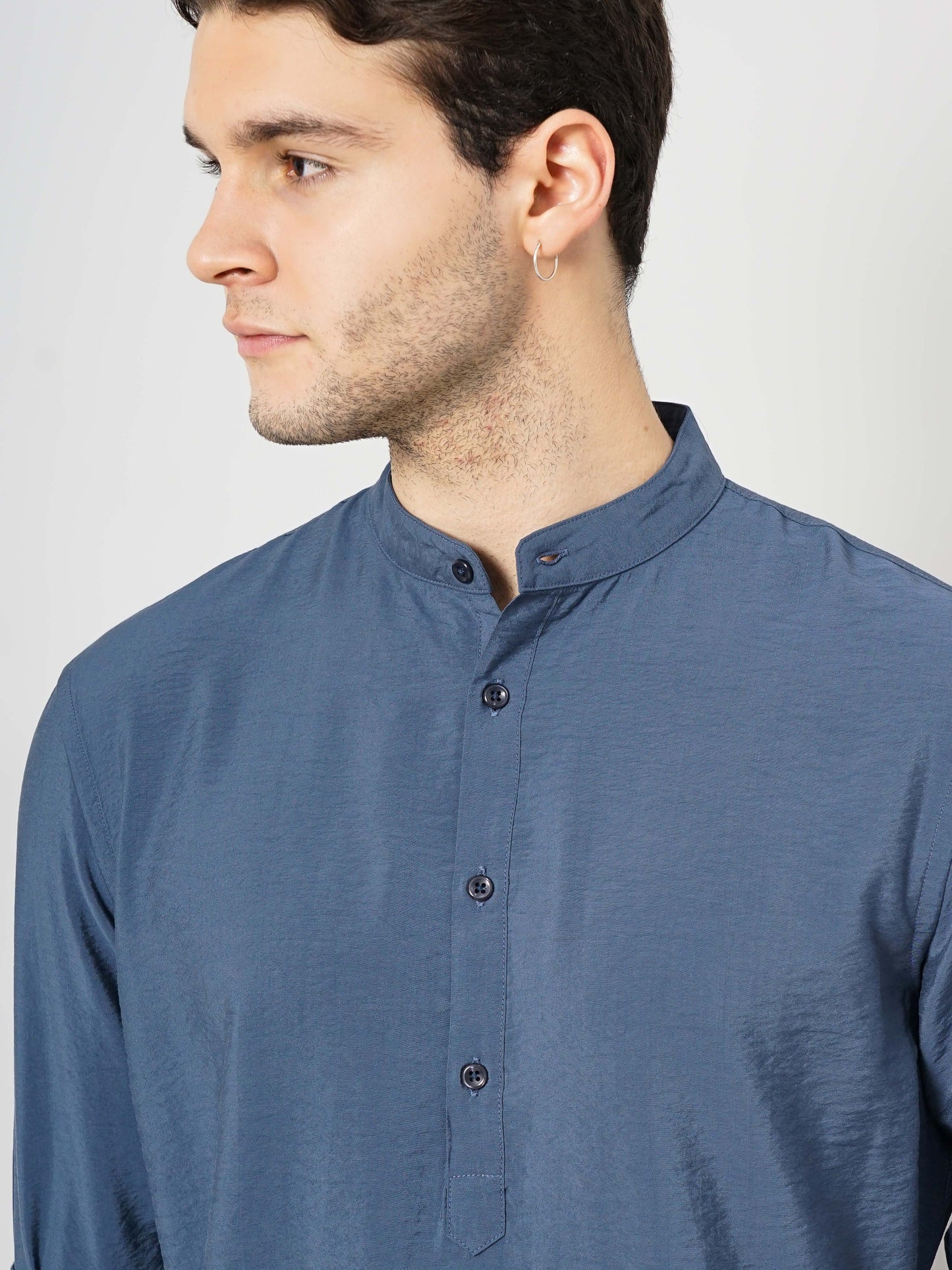 Elevate your casual wardrobe with the Celio Men's Solid Regular Fit Shirt. Crafted from soft viscose rayon, this blue long-sleeve shirt is perfect for every occasion. Disclaimer: All other items in the image are only for display purposes and will not be a part of the delivery content. Product colour may slightly vary due to photographic lighting sources. Country of Origin - India.