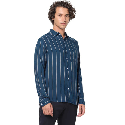 Celio* Striped Regular Fit Viscose Blue Shirt