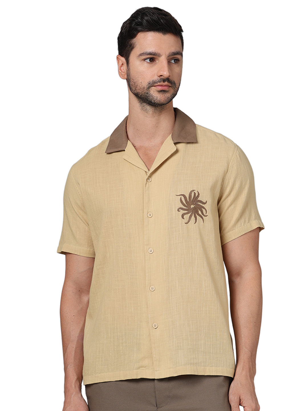 Stay stylish in this Celio Men Brown Casual Shirt. Made from comfortable cotton, it features a spread collar and short sleeves, perfect for casual outings. Disclaimer: All other items in the image are only for display purposes and will not be a part of the delivery content. Product colour may slightly vary due to photographic lighting sources. Country of Origin - India.