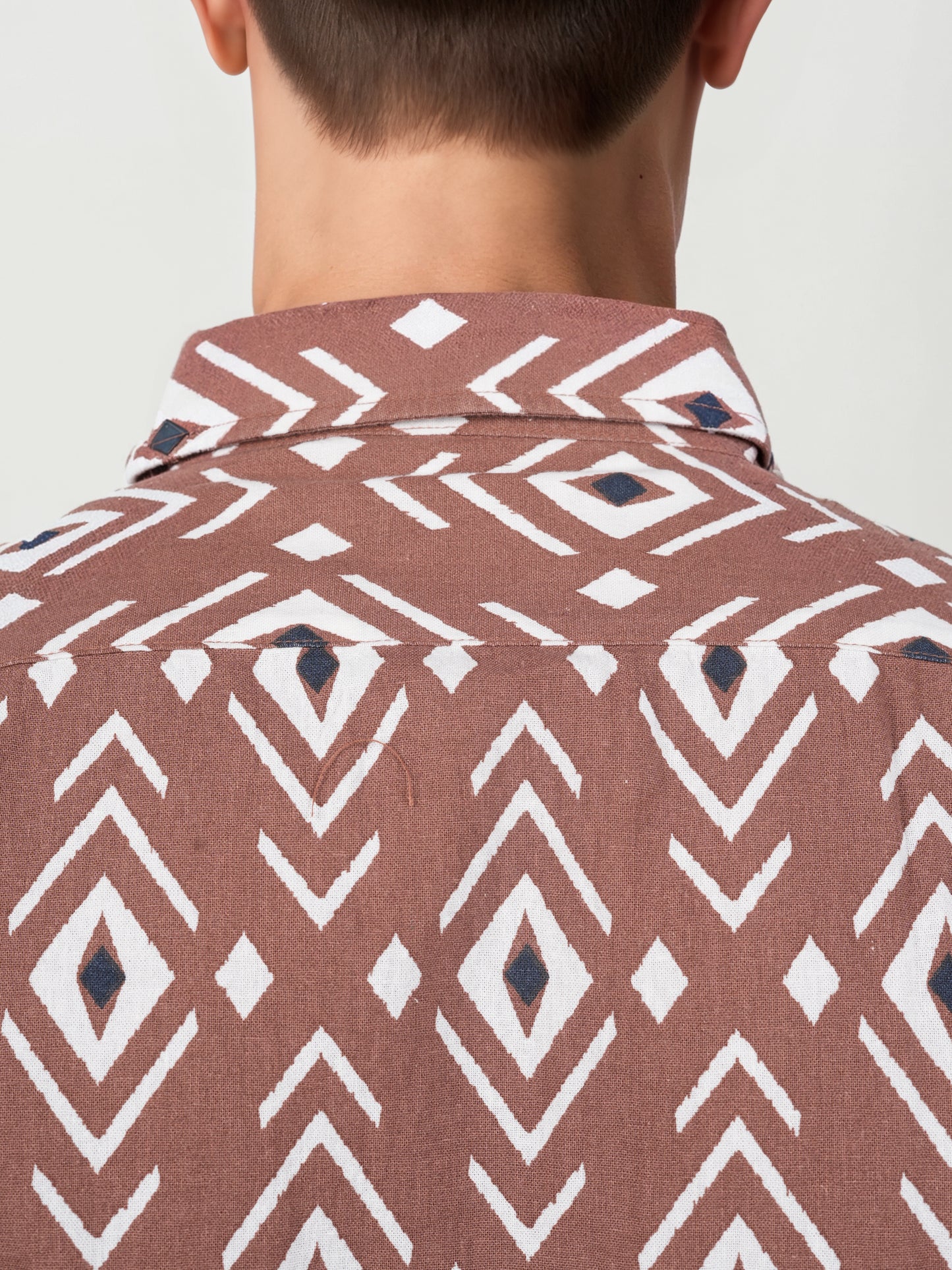 Celio* Printed Regular Fit Cotton Brown Shirt