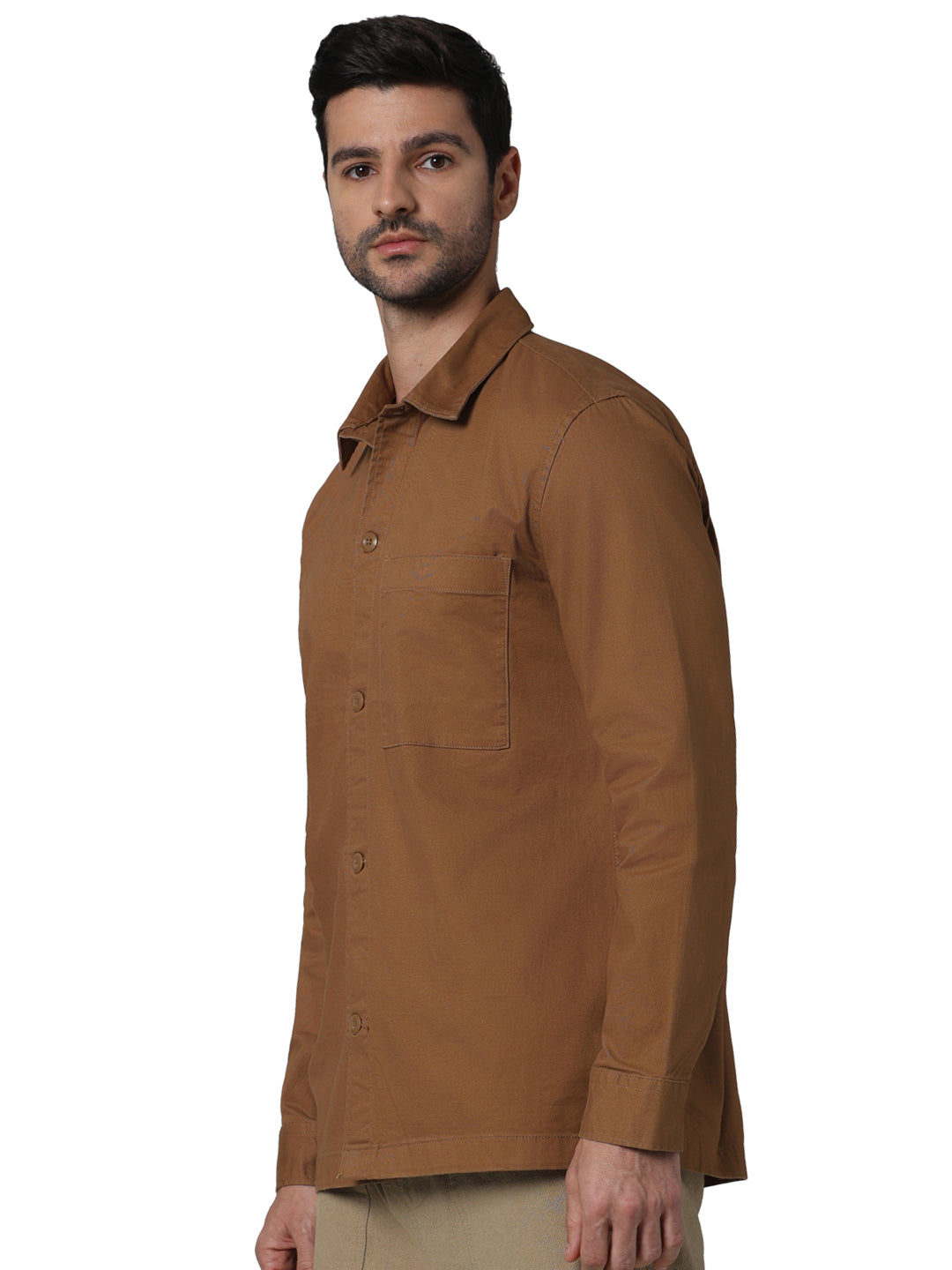 The Celio Men Brown Casual Shirt features a spread collar and long sleeves. Made from soft cotton, this oversized shirt is perfect for a relaxed look on casual occasions. Disclaimer: All other items in the image are only for display purposes and will not be a part of the delivery content. Product colour may slightly vary due to photographic lighting sources. Country of Origin - India.