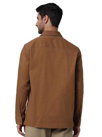 Celio* Solid Oversized Cotton Brown Shirt