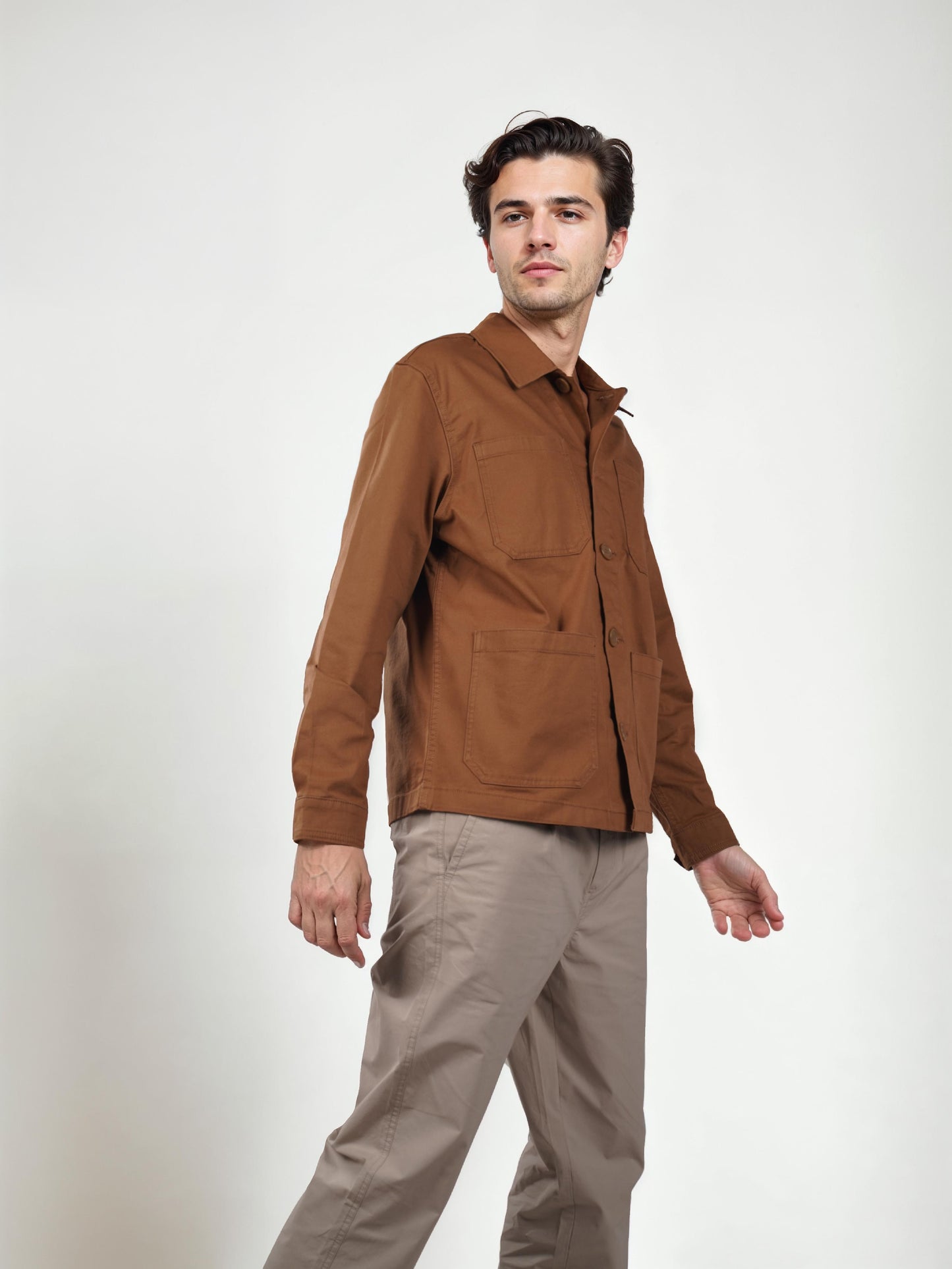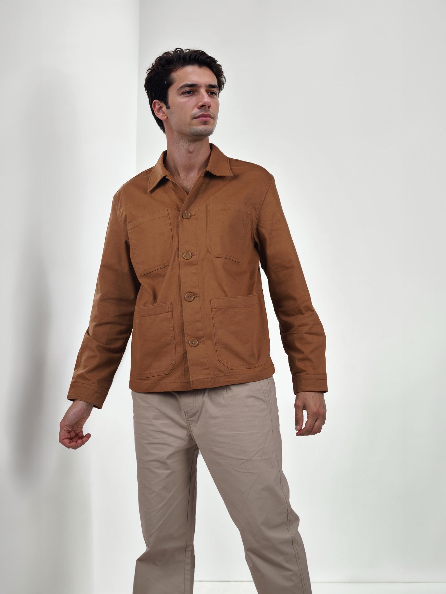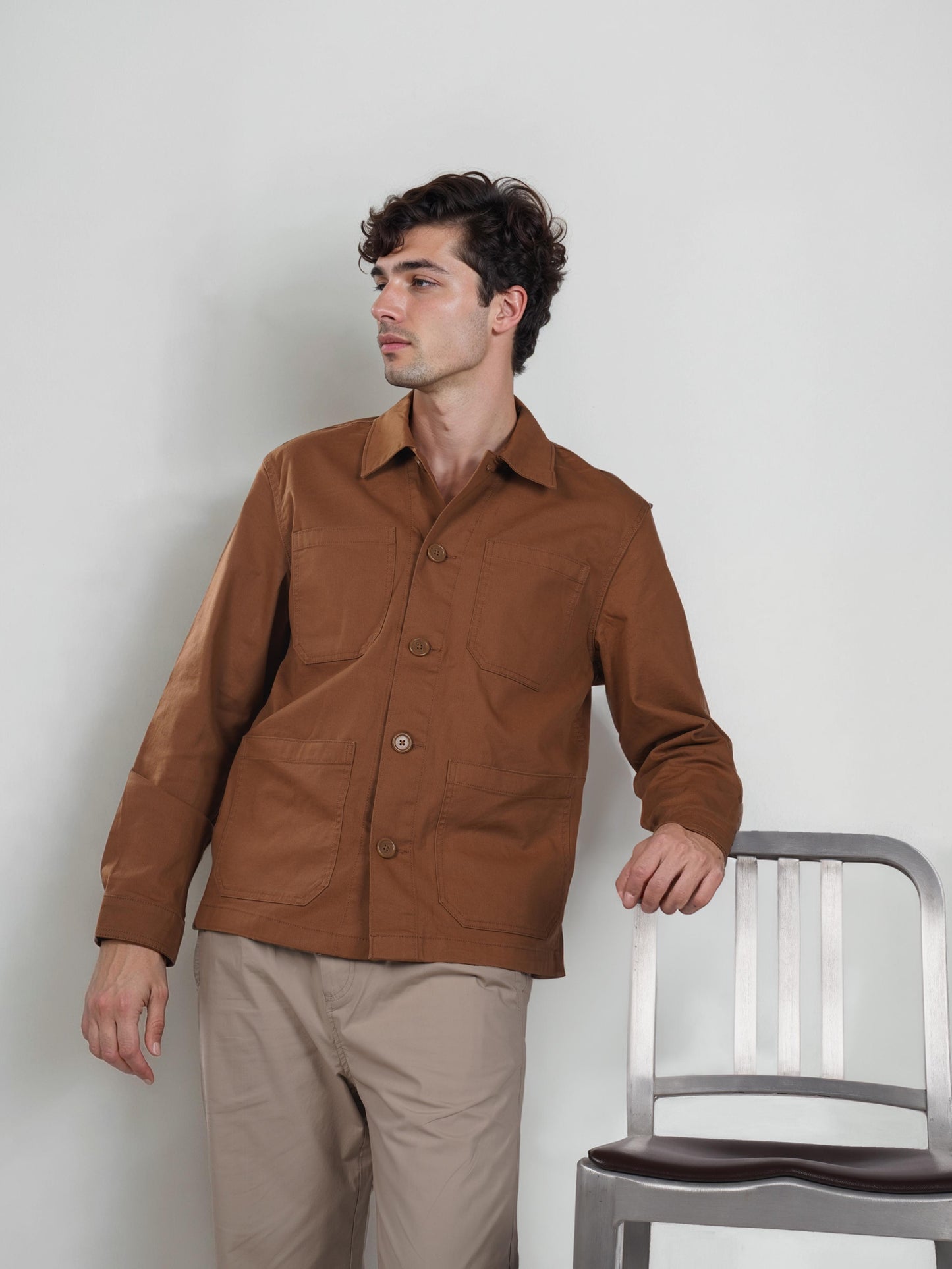 This Celio men's brown spread collar jacket is crafted from cotton, featuring long sleeves and a regular fit. Perfect for casual occasions, it combines style and comfort effortlessly. Disclaimer: All other items in the image are only for display purposes and will not be a part of the delivery content. Product colour may slightly vary due to photographic lighting sources. Country of Origin - India.