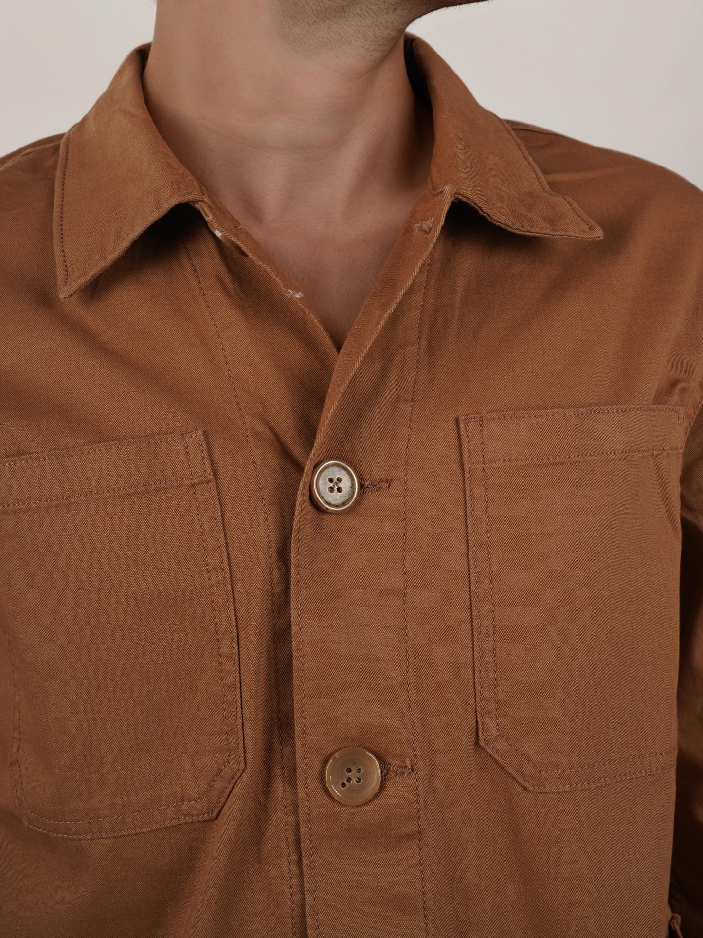 Celio* Solid Regular Fit Cotton Brown Jacket
