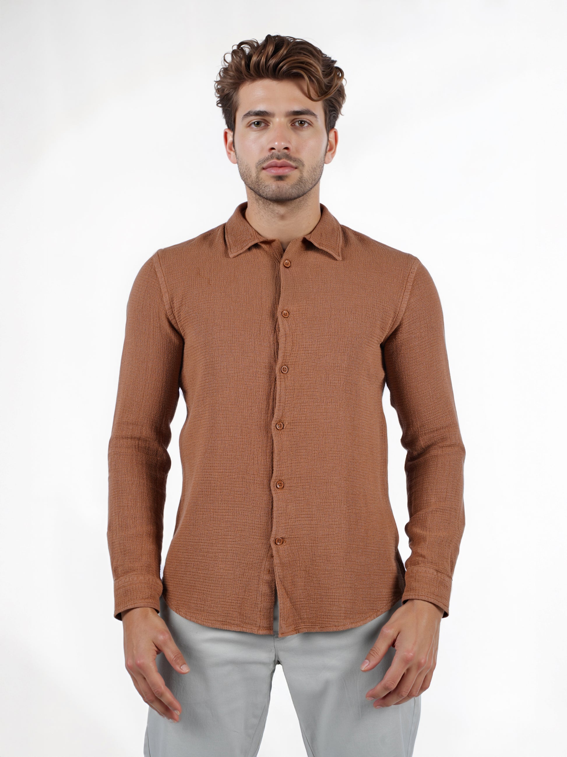 Discover comfort with the Celio Men Brown Solid Casual Shirt. Made from soft cotton, this regular fit shirt features long sleeves, perfect for relaxed outings. Disclaimer: All other items in the image are only for display purposes and will not be a part of the delivery content. Product colour may slightly vary due to photographic lighting sources. Country of Origin - India.