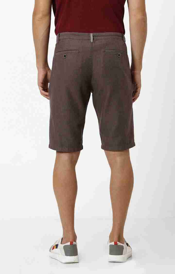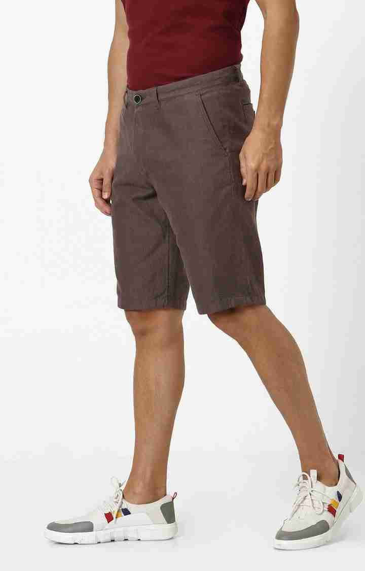 Discover the Celio Men's Coffee Brown Solid Shorts, perfect for casual wear. Made from comfortable cotton, these stylish shorts are ideal for any laid-back occasion. Disclaimer: All other items in the image are only for display purposes and will not be a part of the delivery content. Product colour may slightly vary due to photographic lighting sources. Country of Origin - India.