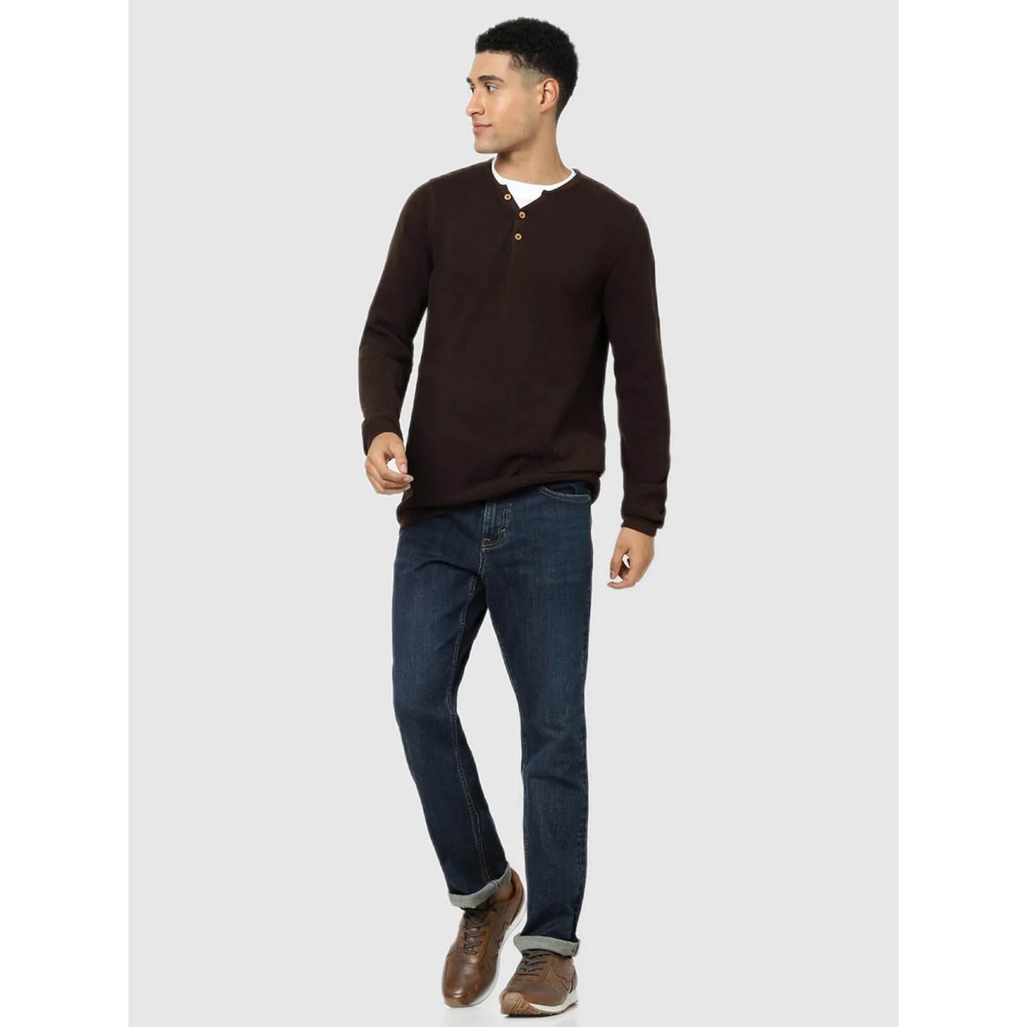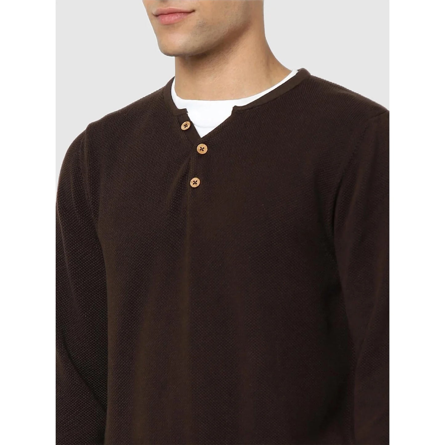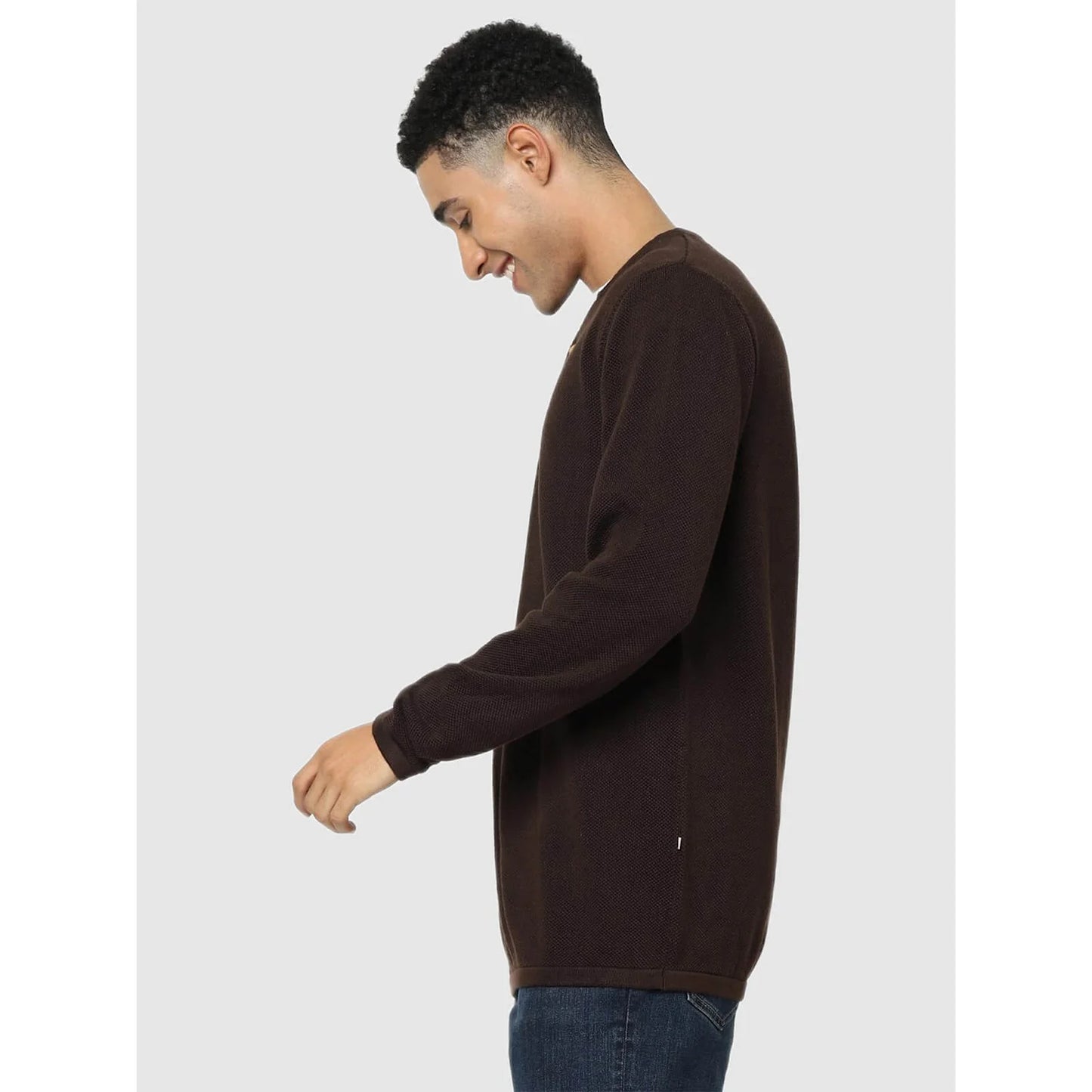 Elevate your casual wardrobe with the Celio Dark Brown Regular Fit Solid Sweater. Made from comfortable cotton, it features long sleeves and is perfect for men seeking style and comfort. Disclaimer: All other items in the image are only for display purposes and will not be a part of the delivery content. Product colour may slightly vary due to photographic lighting sources. Country of Origin - India.