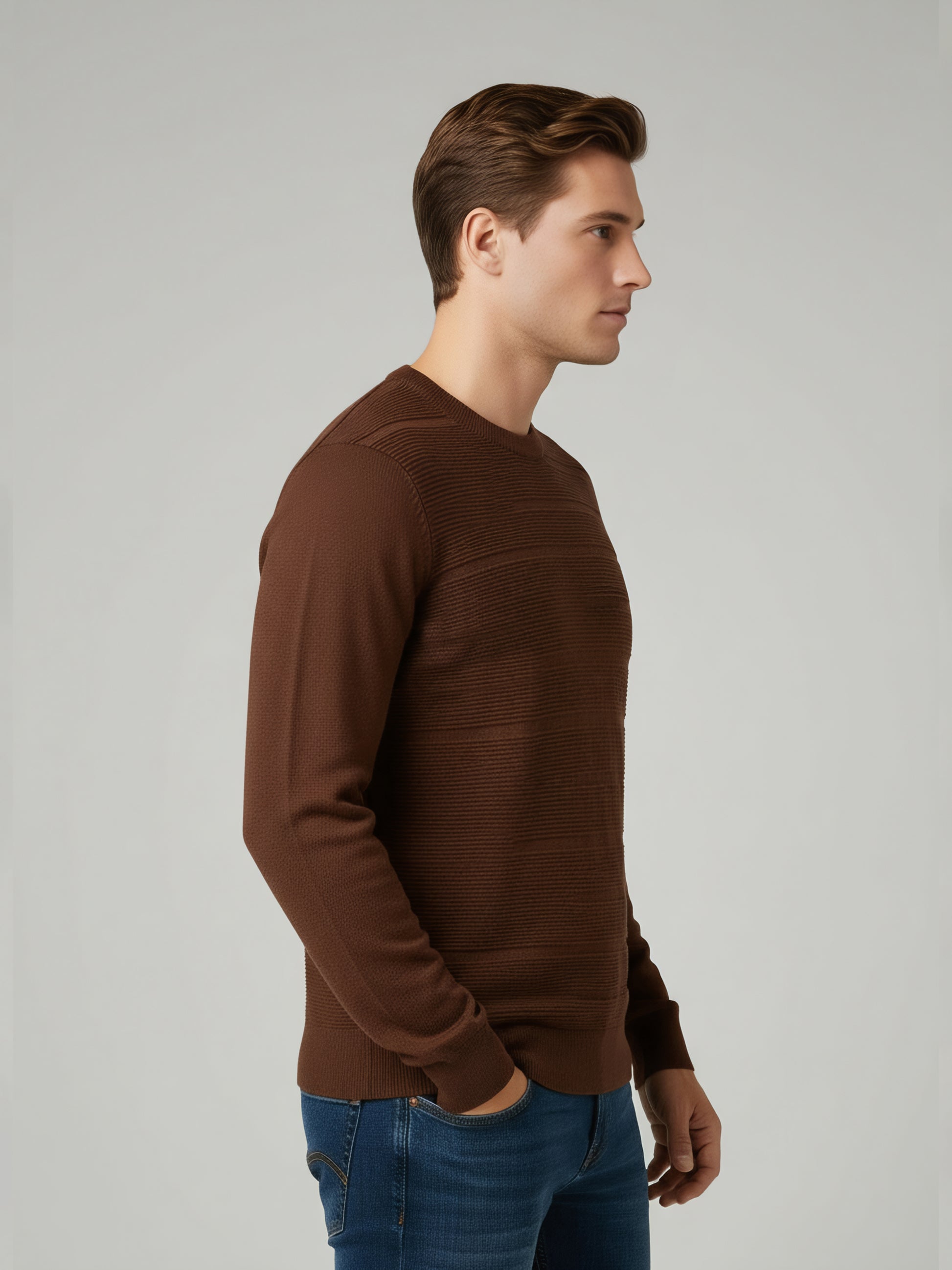 Elevate your casual style with the Celio Men Brown Solid Cotton Jacquard Sweater. Designed for comfort, it features long sleeves and a regular fit, perfect for any occasion. Disclaimer: All other items in the image are only for display purposes and will not be a part of the delivery content. Product colour may slightly vary due to photographic lighting sources. Country of Origin - India.
