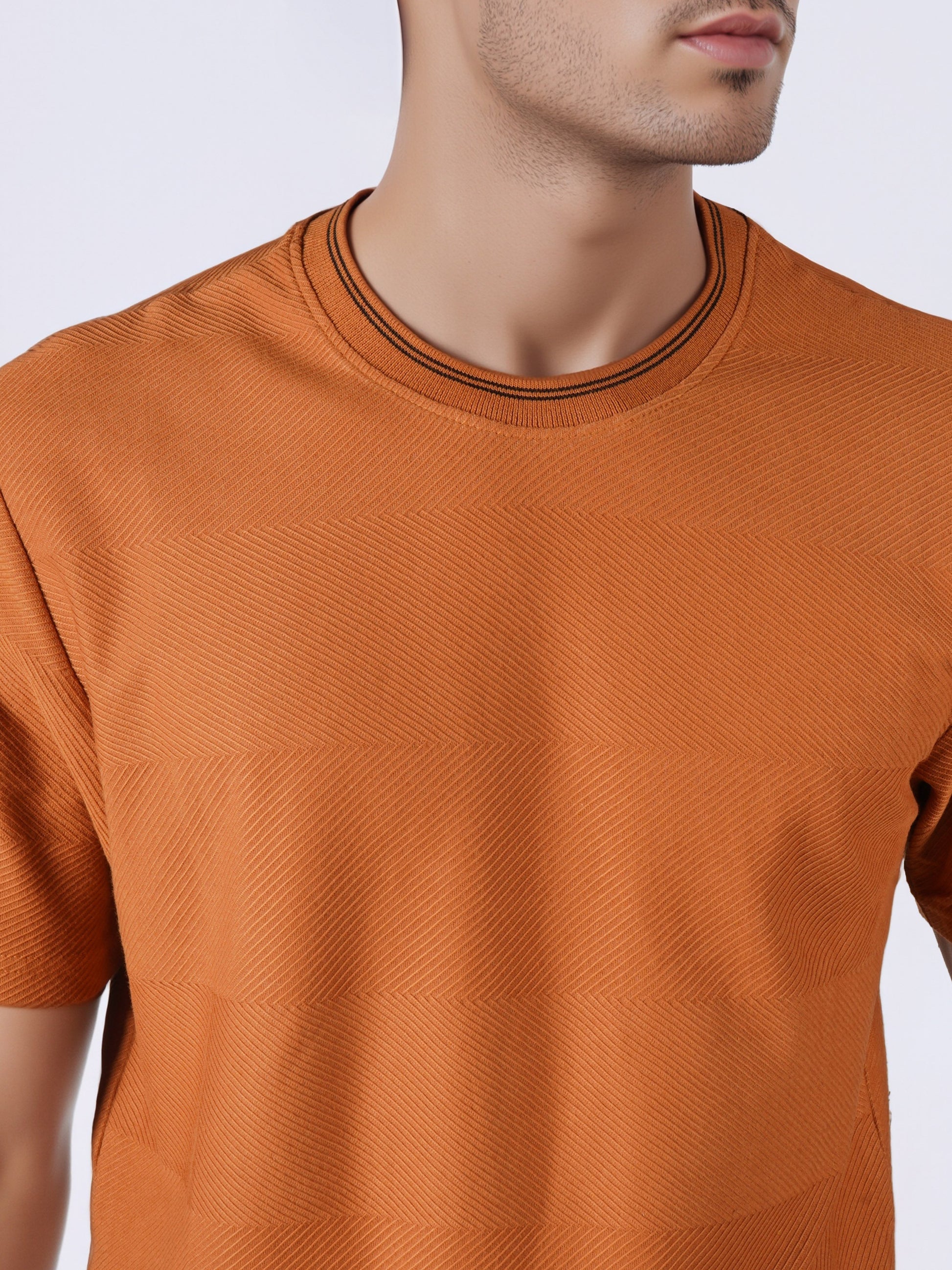 Celio* Men Brown Solid Regular Fit Cotton T-Shirts