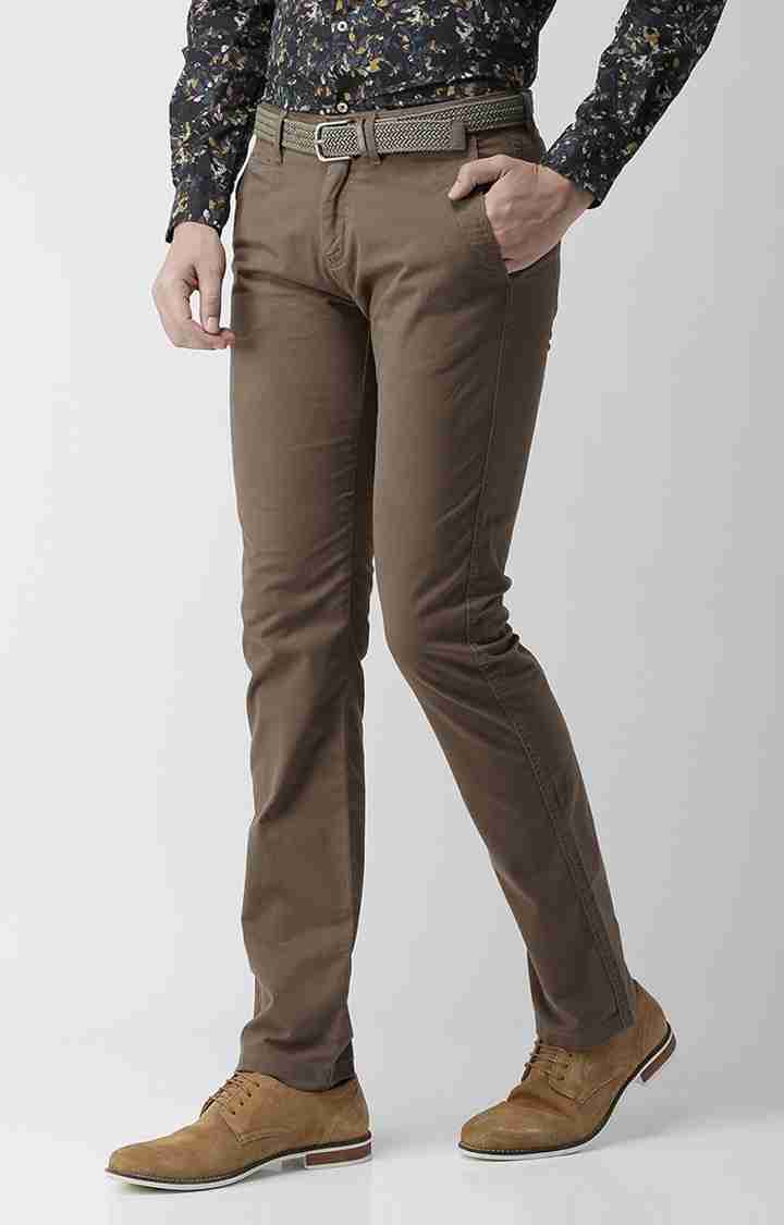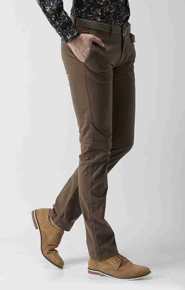 Celio Men's Brown Cotton Blend Chinos, perfect for casual occasions. Designed for men, these solid khakis offer both style and comfort. Disclaimer: All other items in the image are only for display purposes and will not be a part of the delivery content. Product colour may slightly vary due to photographic lighting sources. Country of Origin - India.