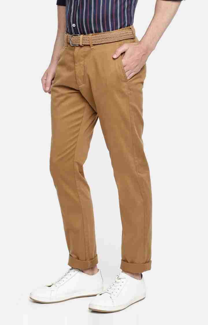 Discover the Celio Men's Brown Slim Fit Chinos, crafted from soft cotton. Perfect for casual occasions, these brown chinos offer a stylish and comfortable fit for every modern man. Disclaimer: All other items in the image are only for display purposes and will not be a part of the delivery content. Product colour may slightly vary due to photographic lighting sources. Country of Origin - India.